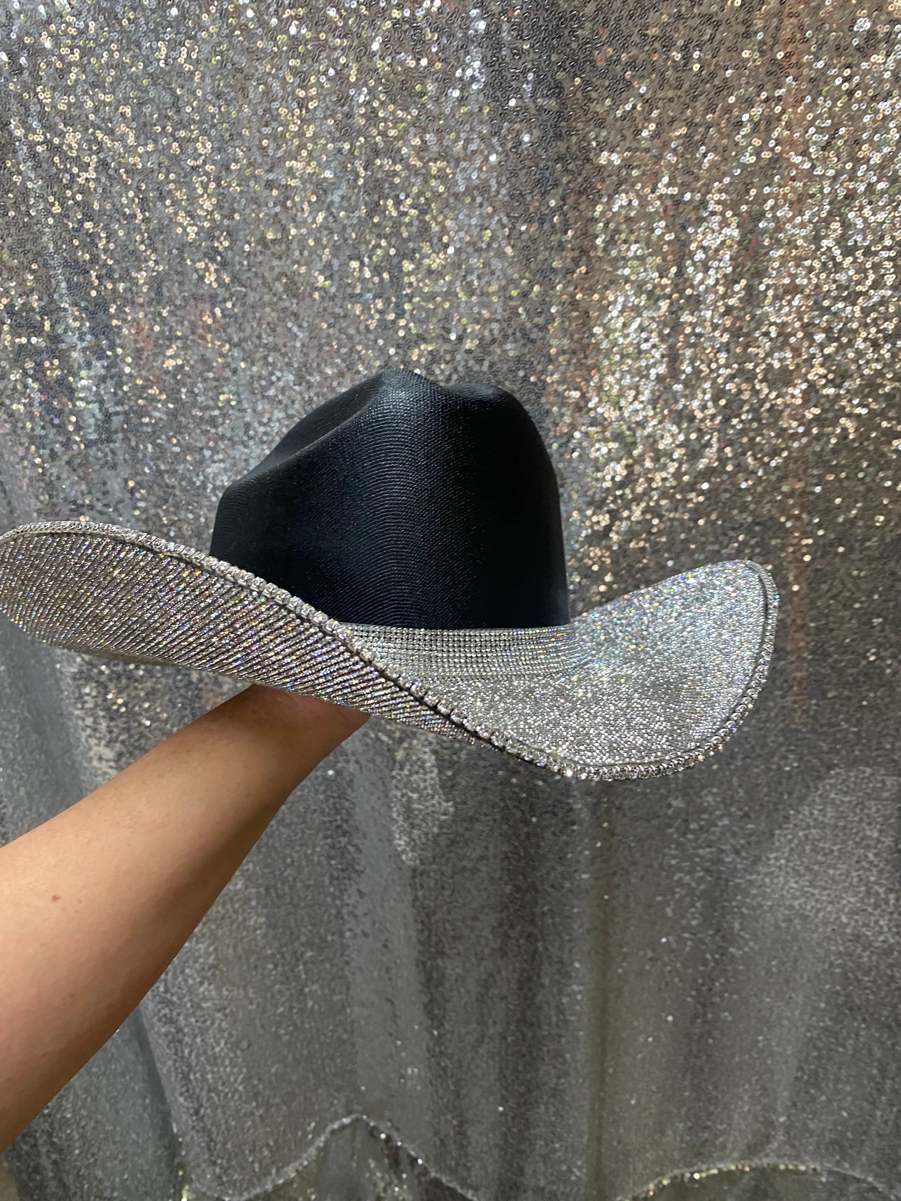 Our black and crystal hat features our black hat + crystal rhinestones on both brims. Perfect for those wanting a fall or winter black hat, with the glam of the crystal rhinestones. One of our top sellers!
