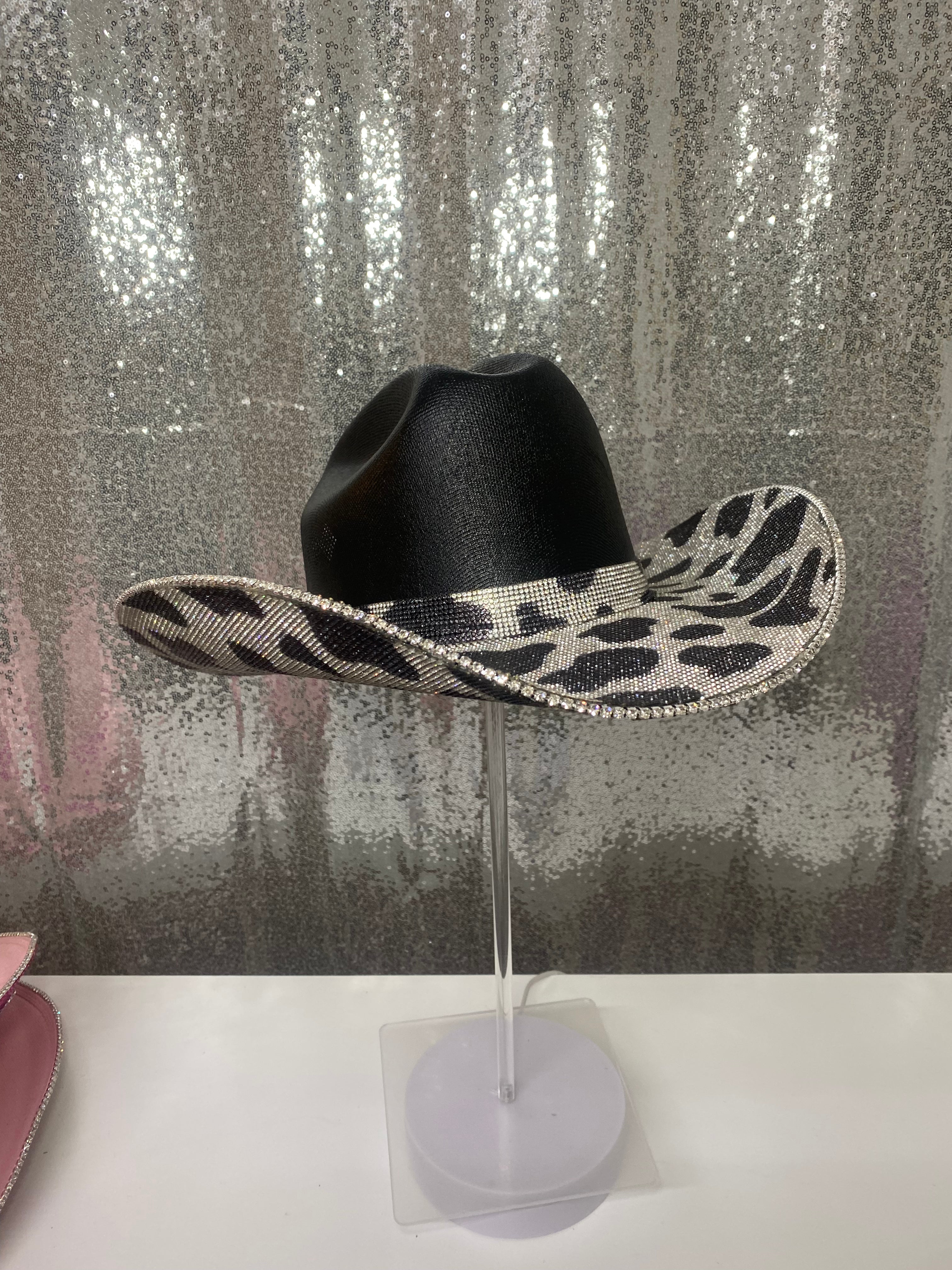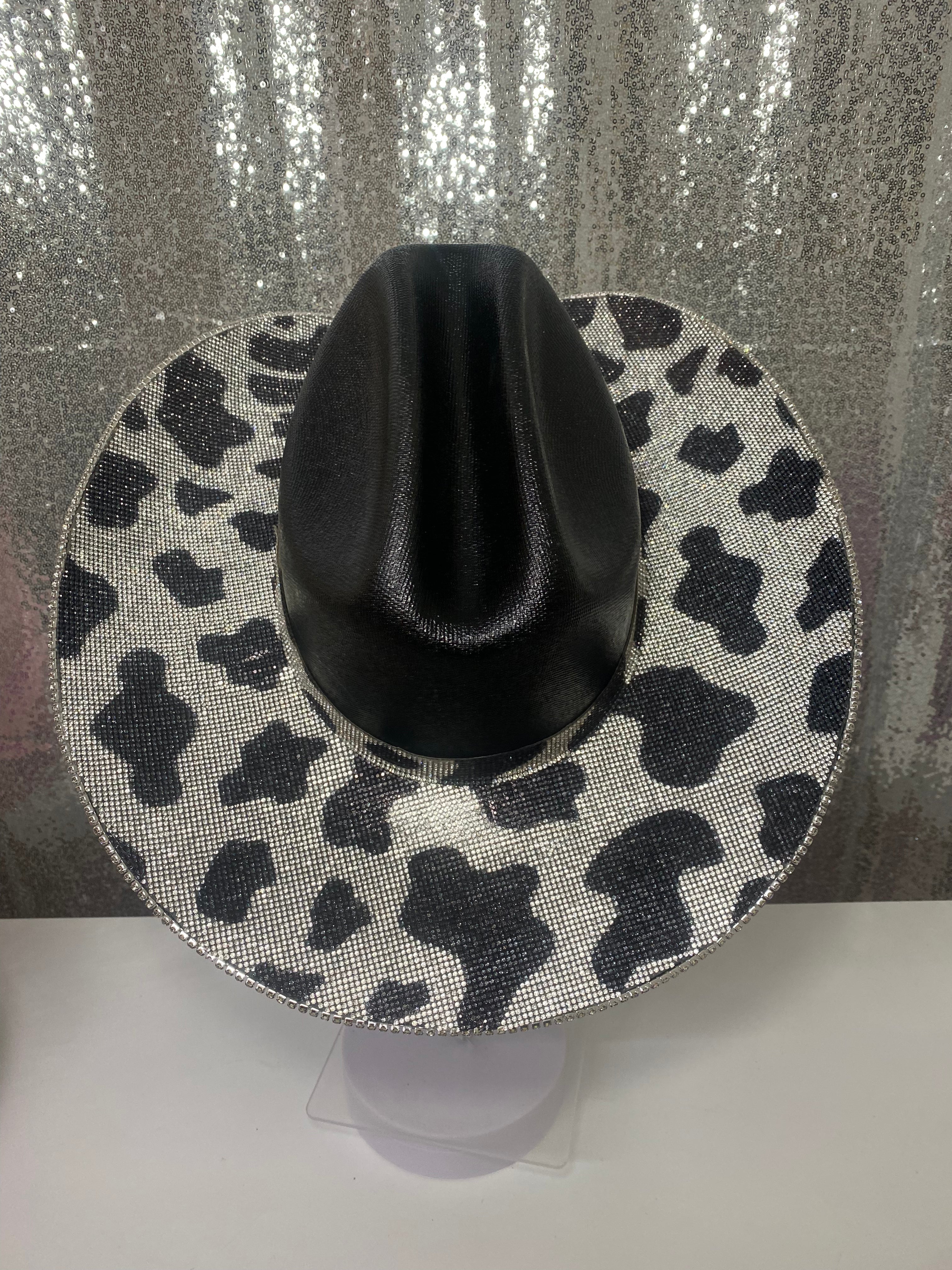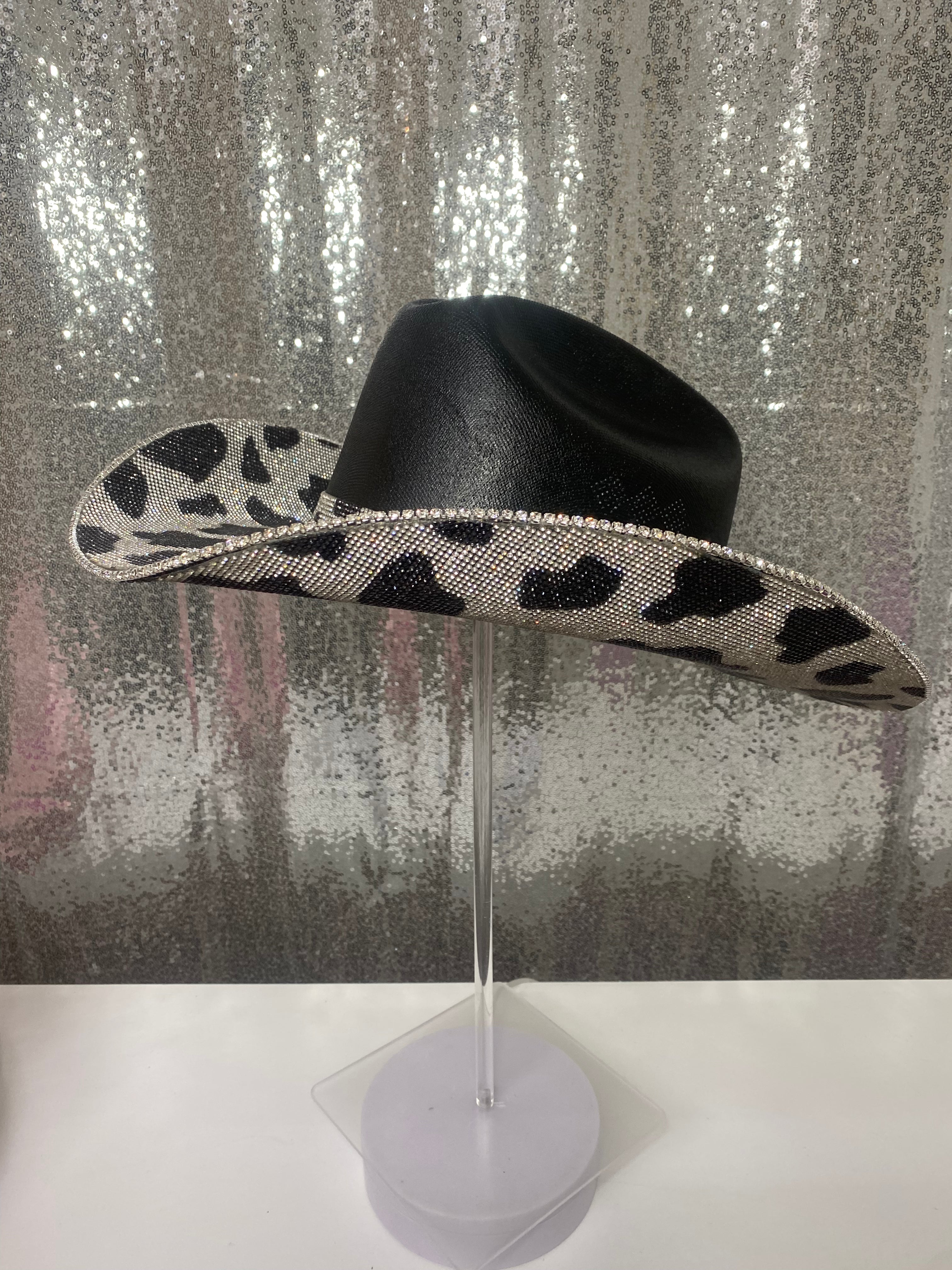 • Black cow print rhinestones on the underneath brim, OR option to have both brims in black cow print