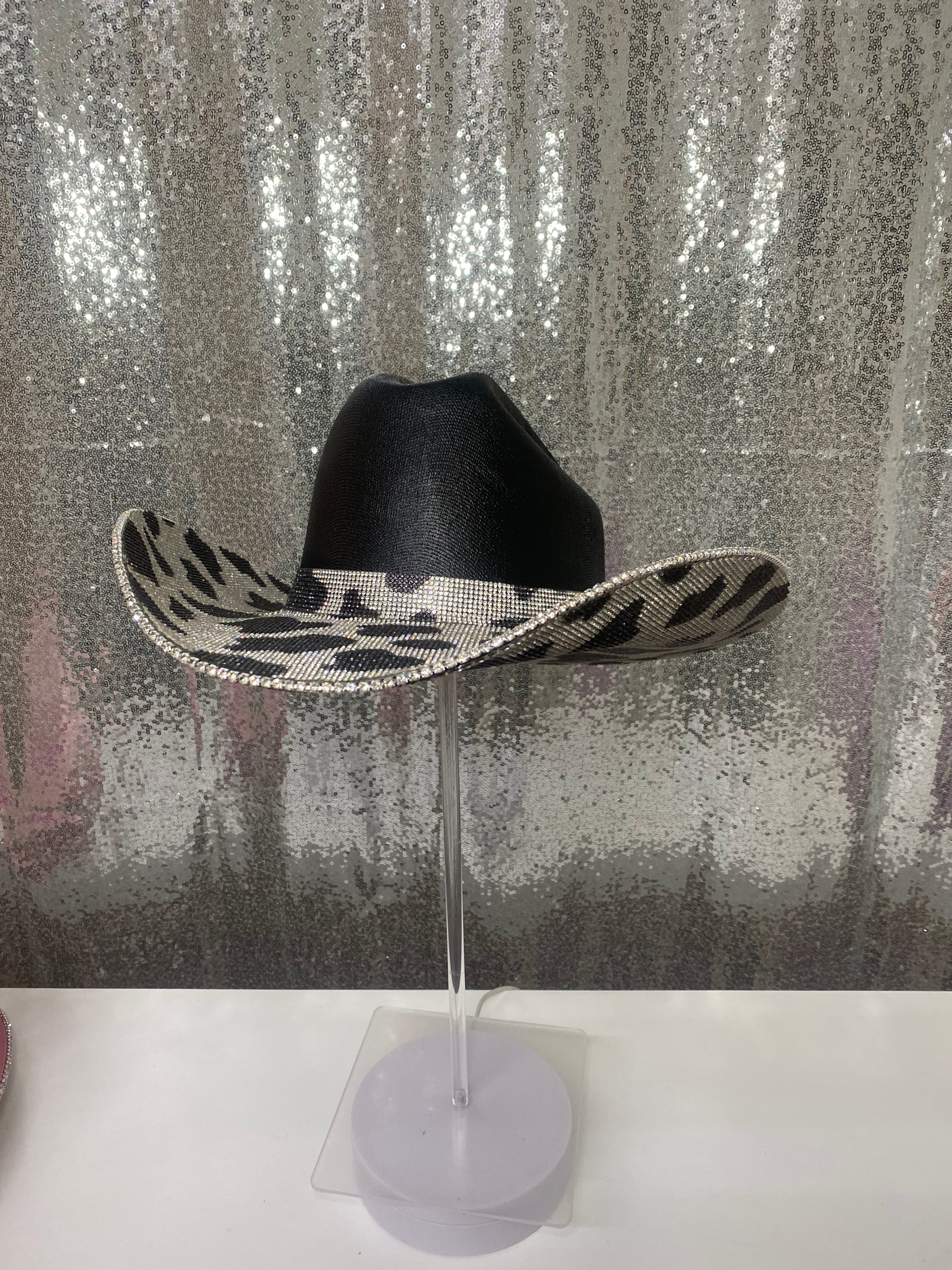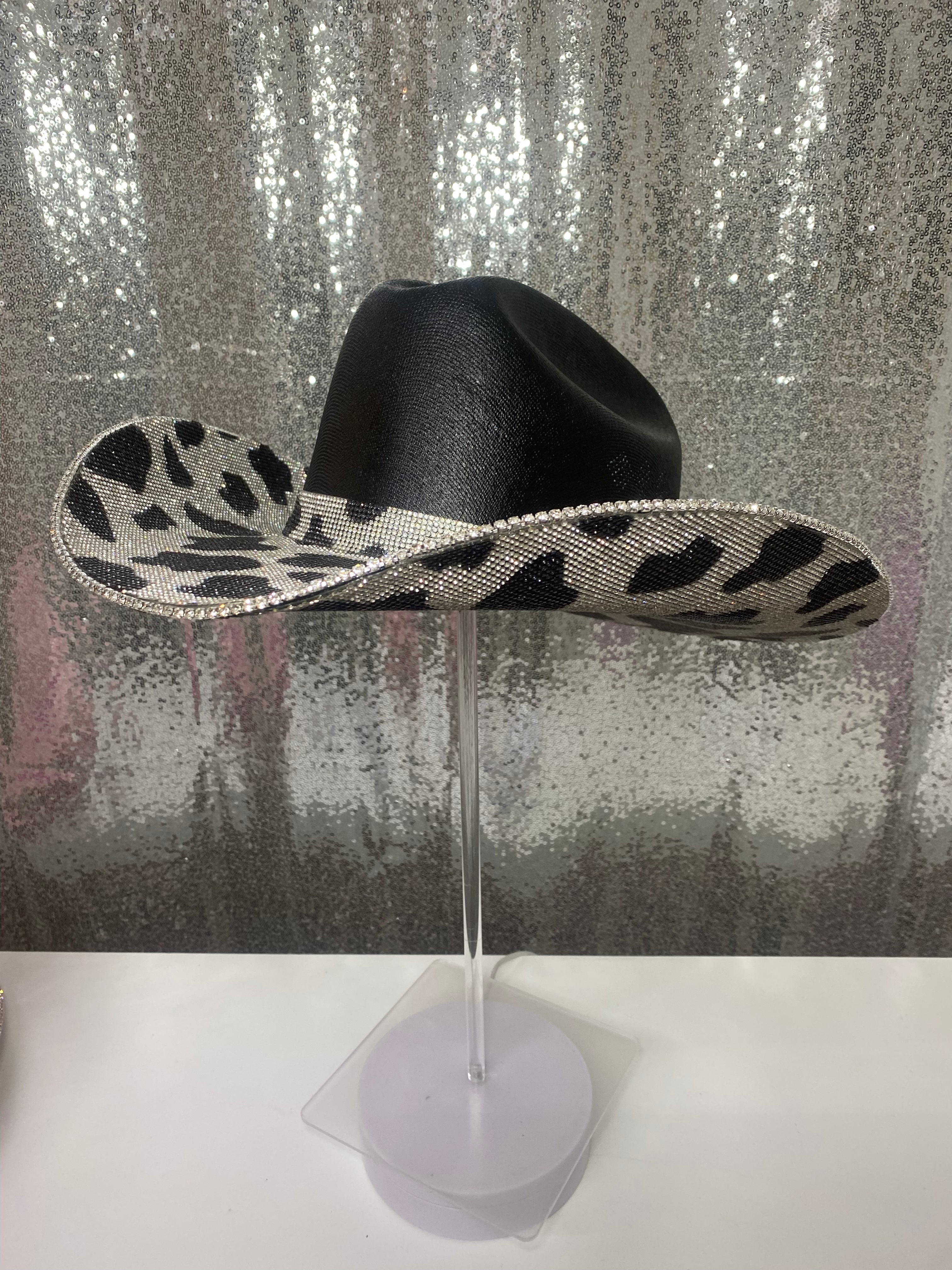 • Rhinestone color on bottom brim: Black & crystal cow print