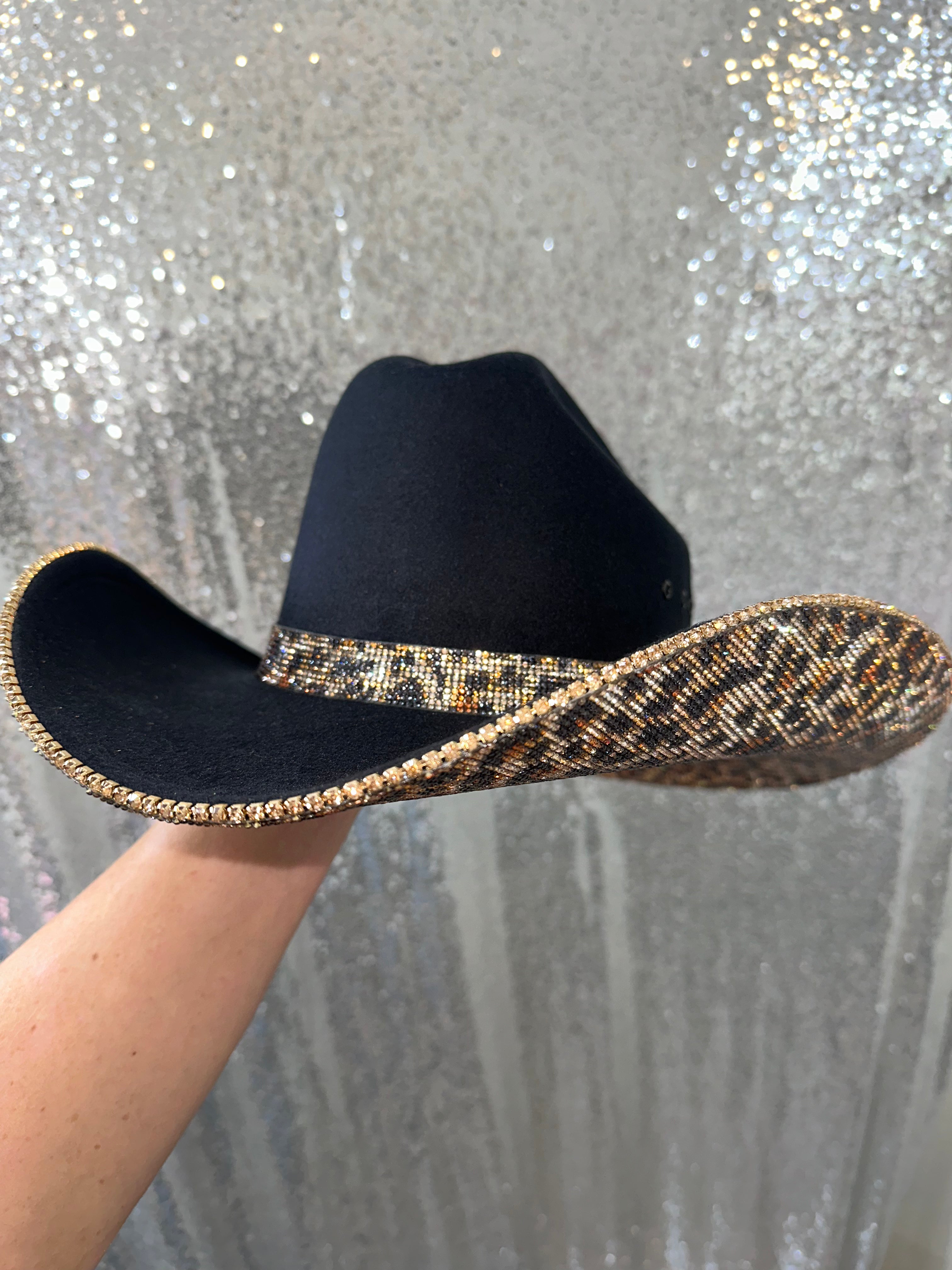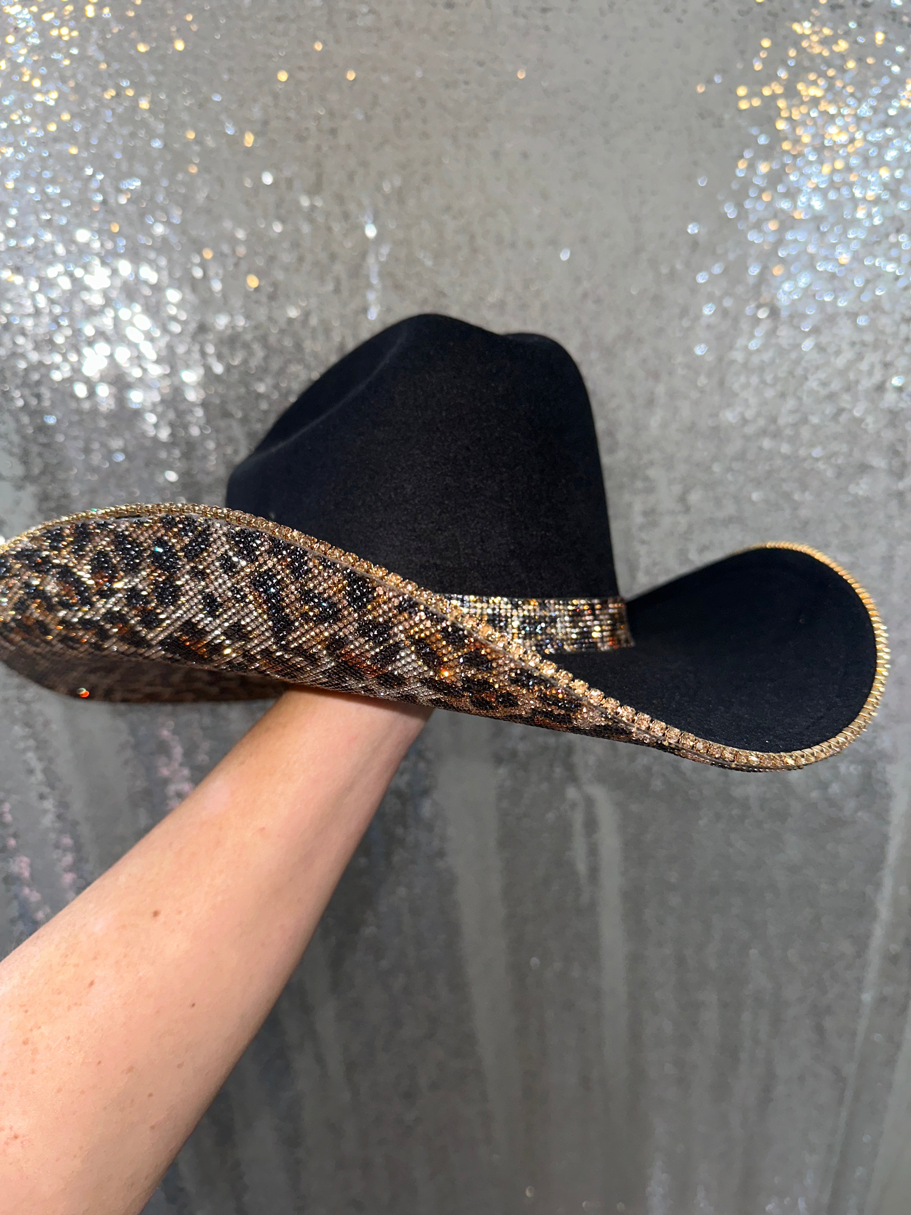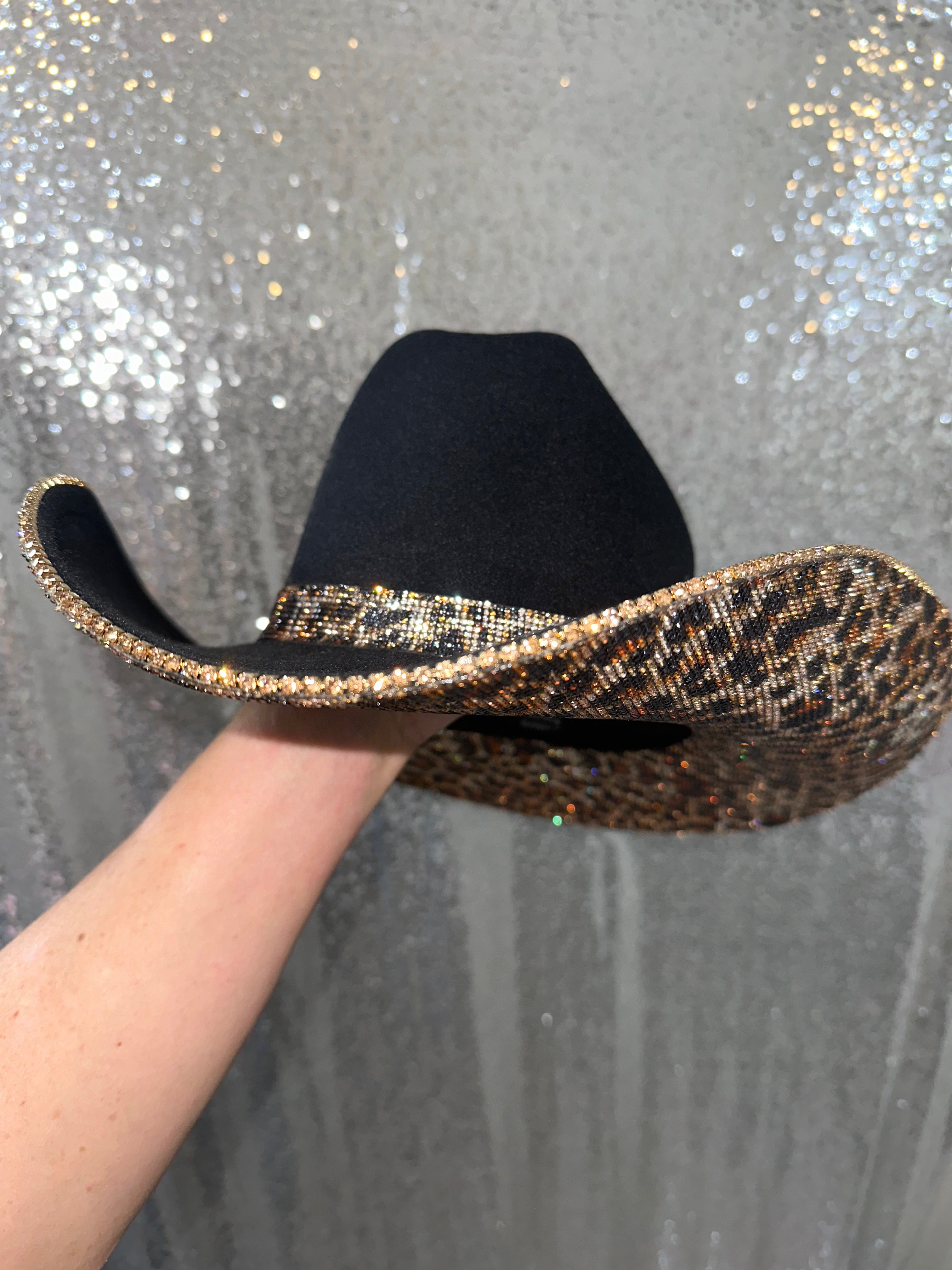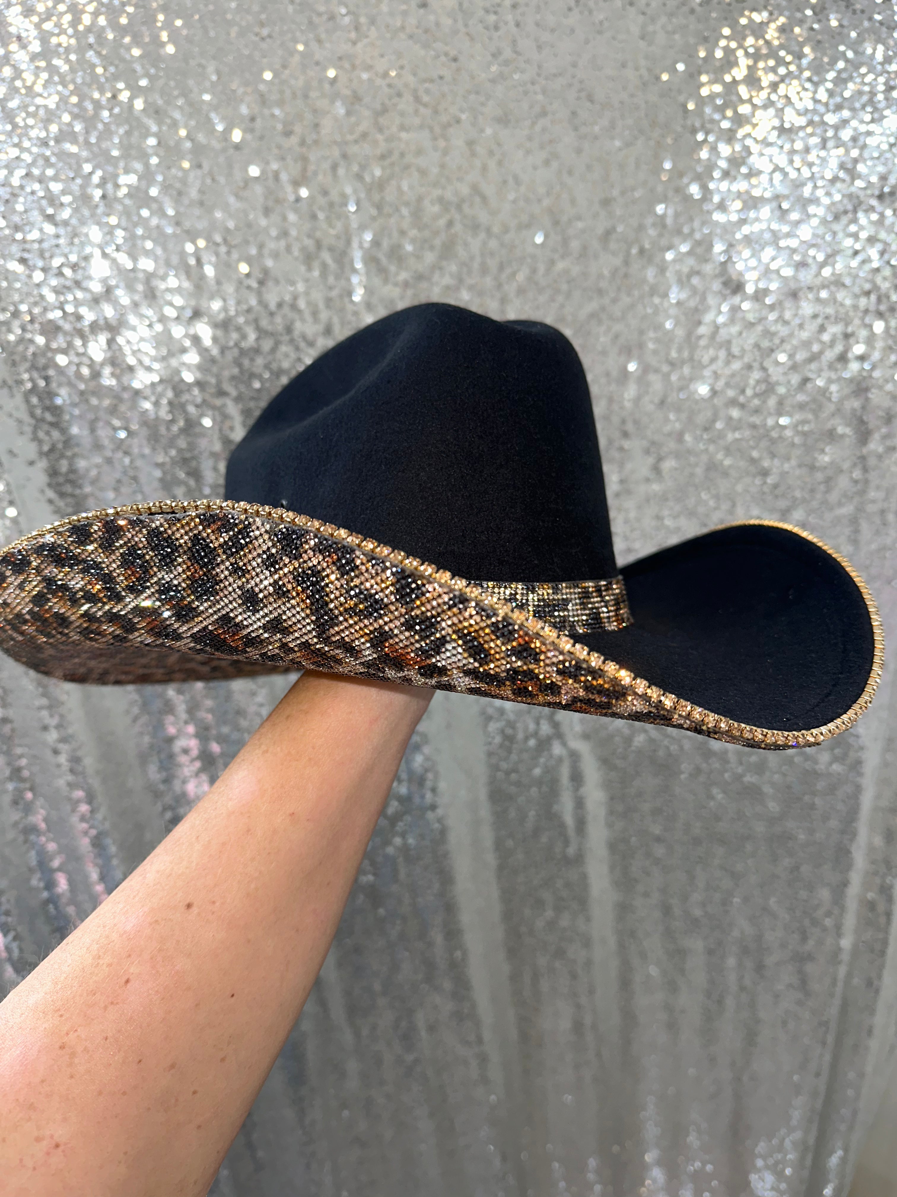 • Leopard rhinestones on the underneath brim with a matching leopard hat band and trim
