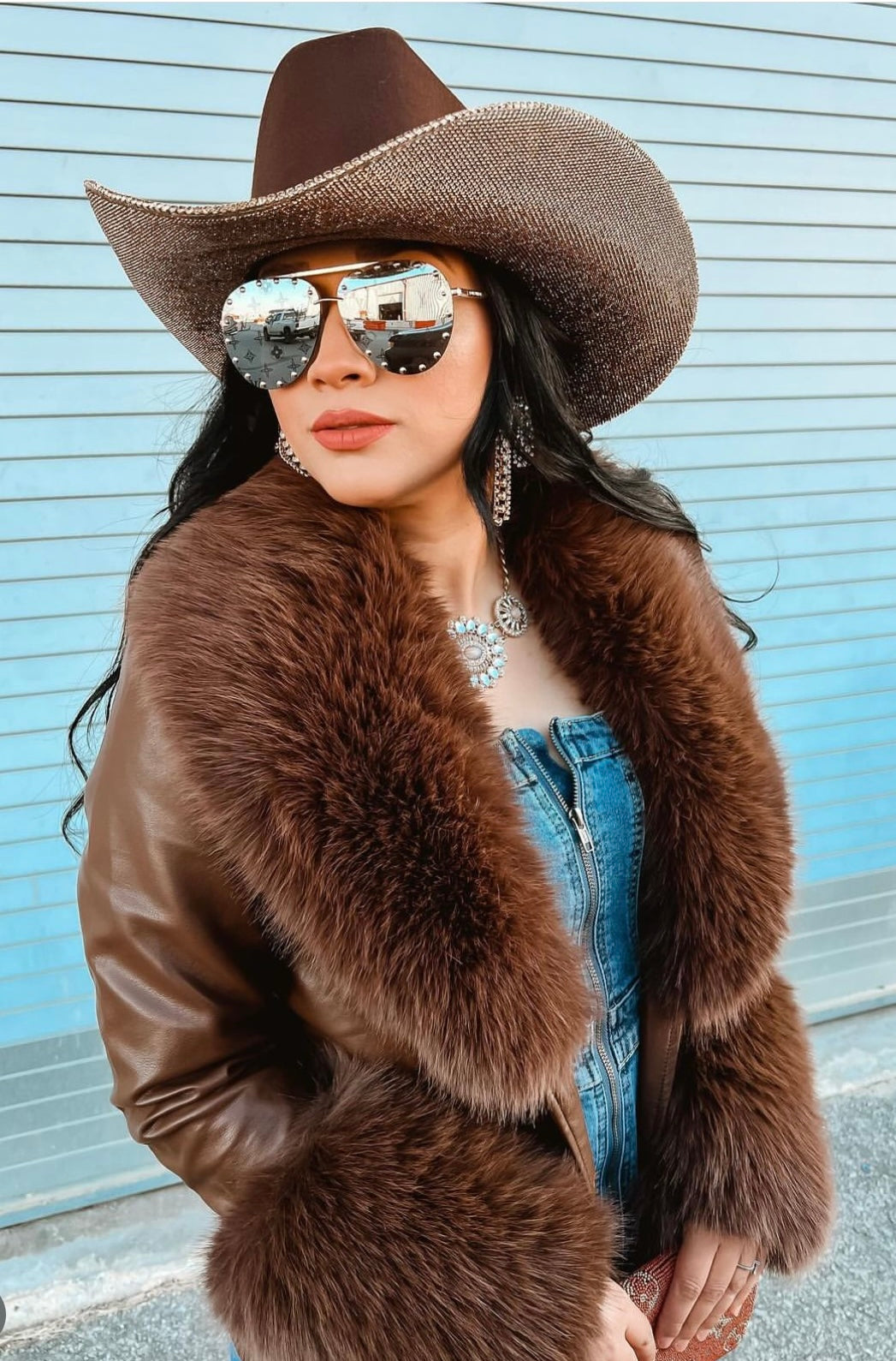 One of our new felt hats! These suede's are the newest trending item for the fall and winter season this year. Perfect for fall weddings, NFR, rodeo balls and more. You will absolutely make a statement in these hats and be the best dressed at your event!