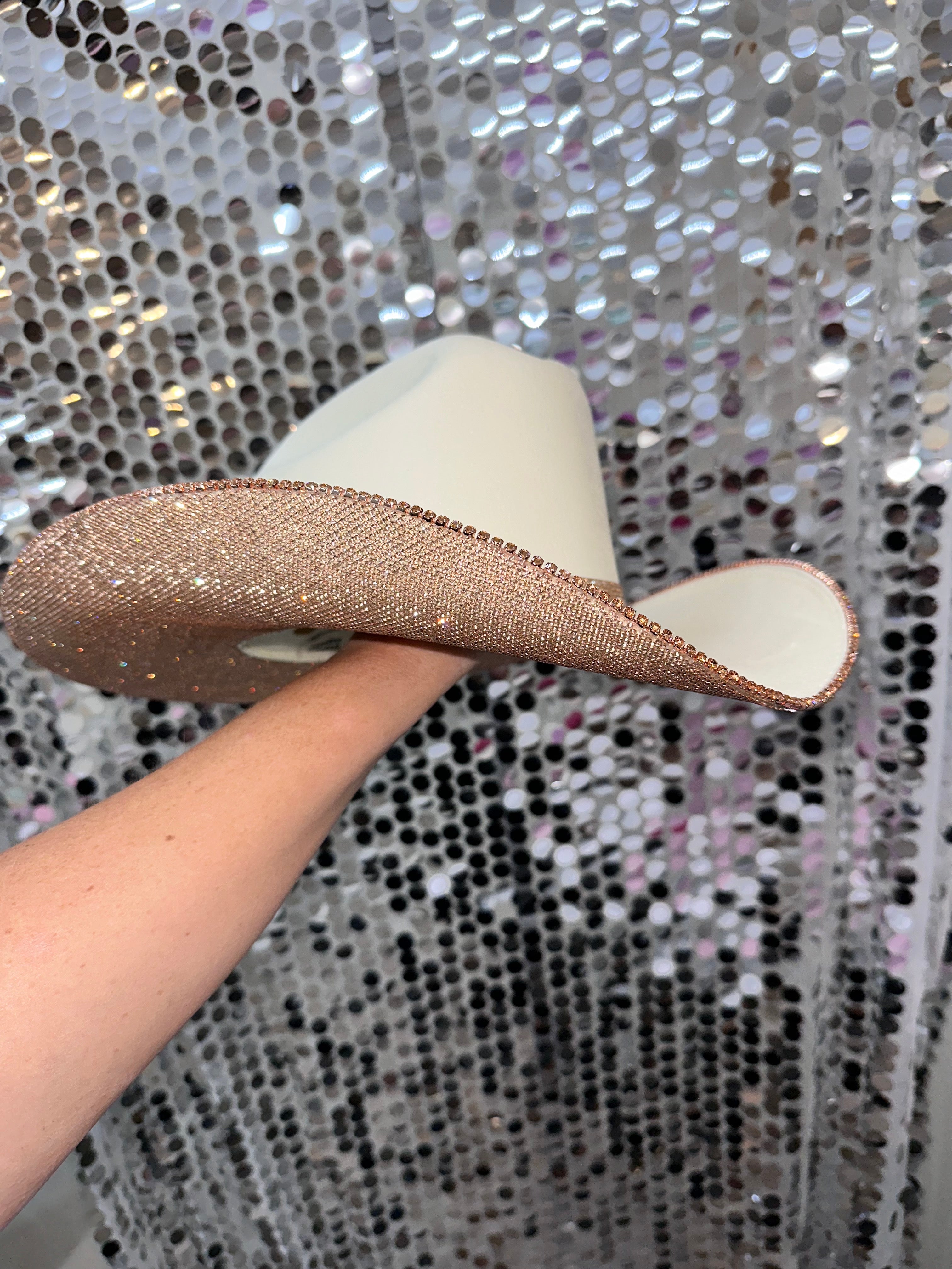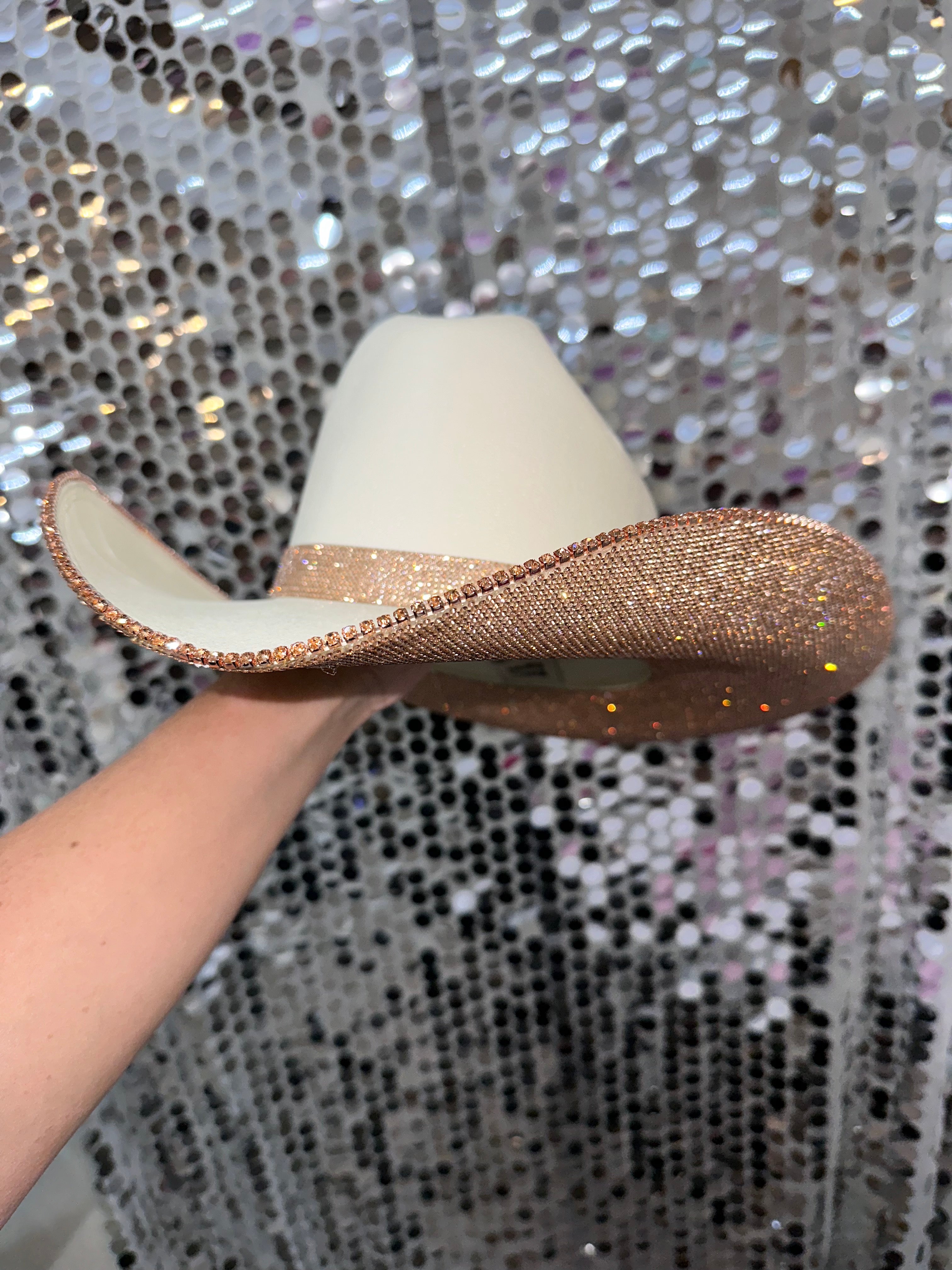 The sand and champagne hat is one of our top sellers and features a more western flare with the the sand color. Perfect for us western girls, heading to a country concert, barrel racers or show girls! This hat will match every outfit you have and is truly a show stopper!