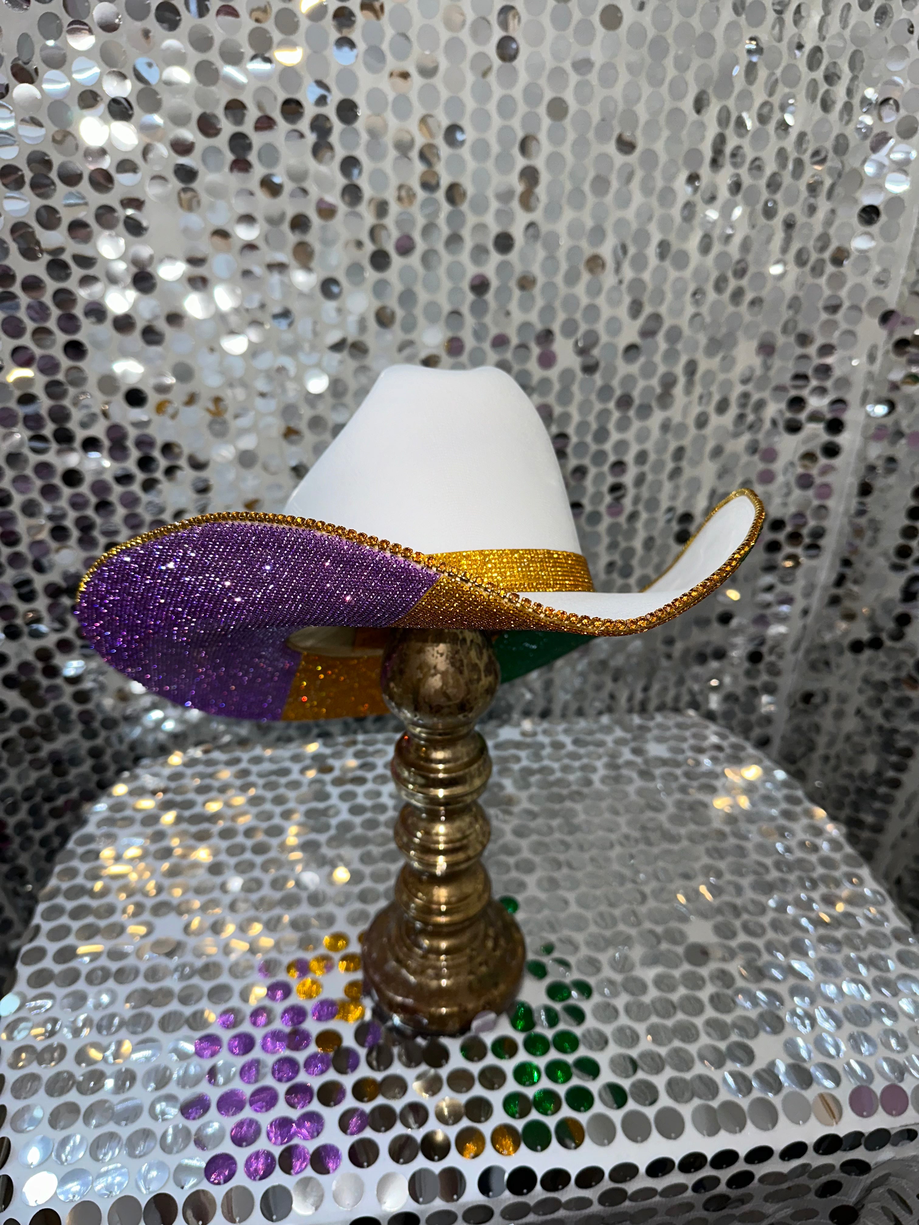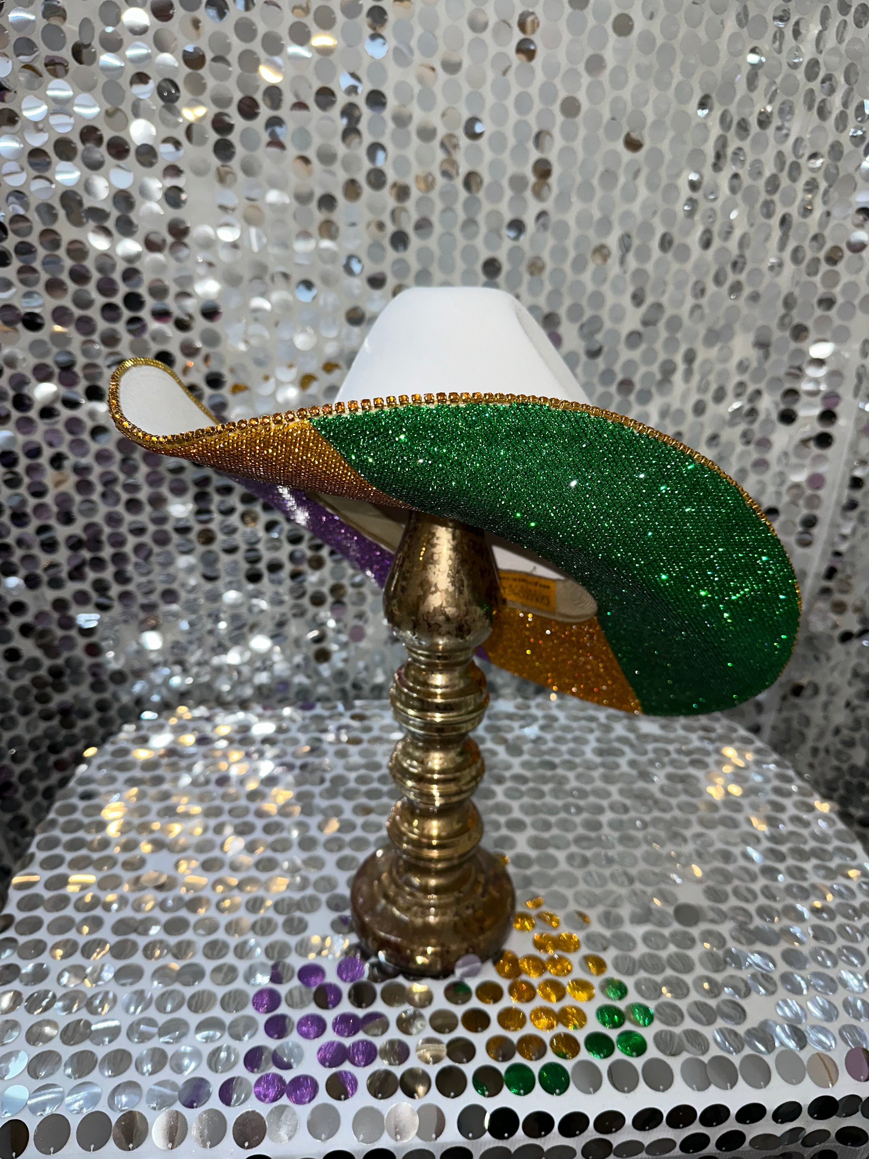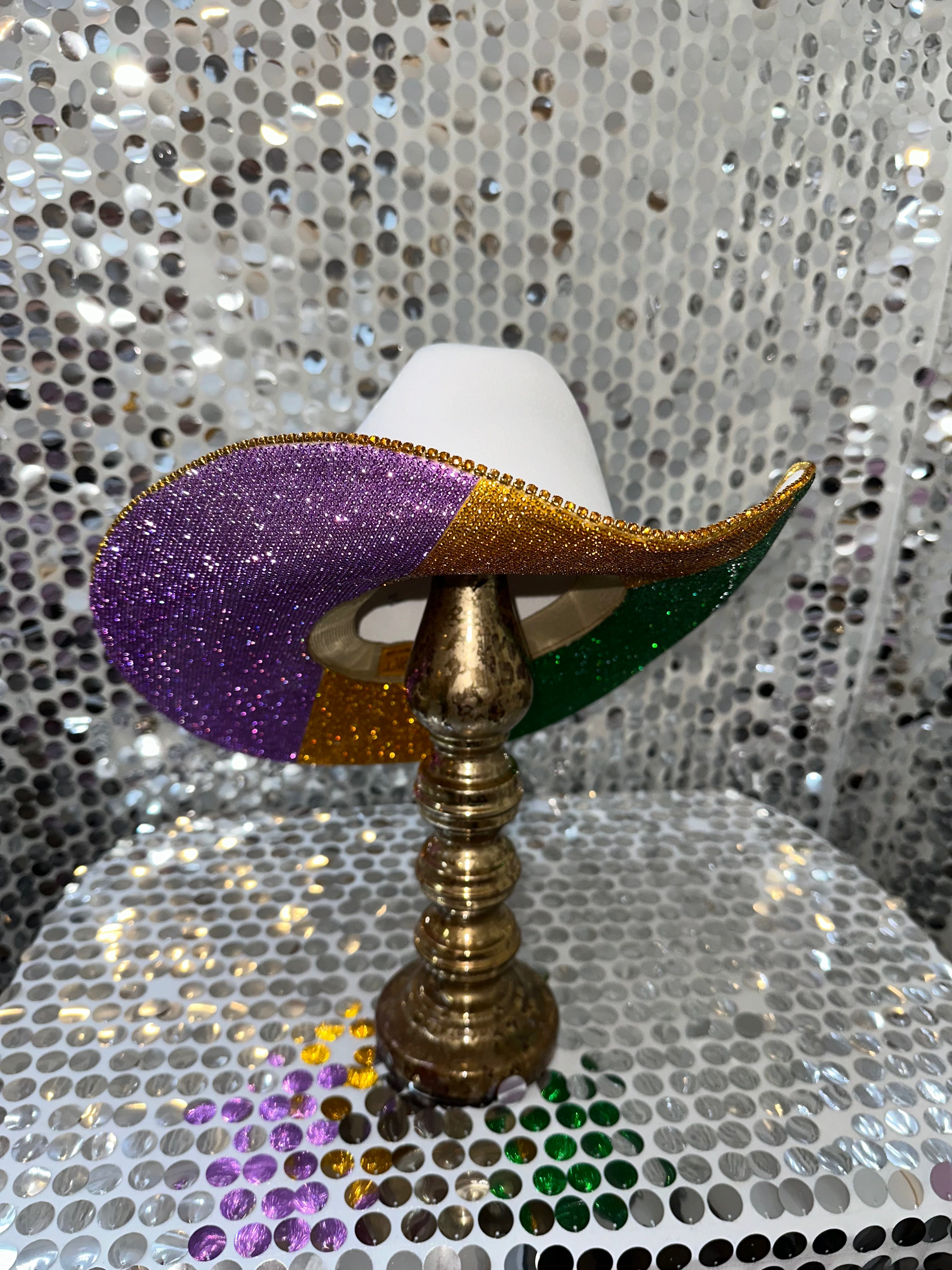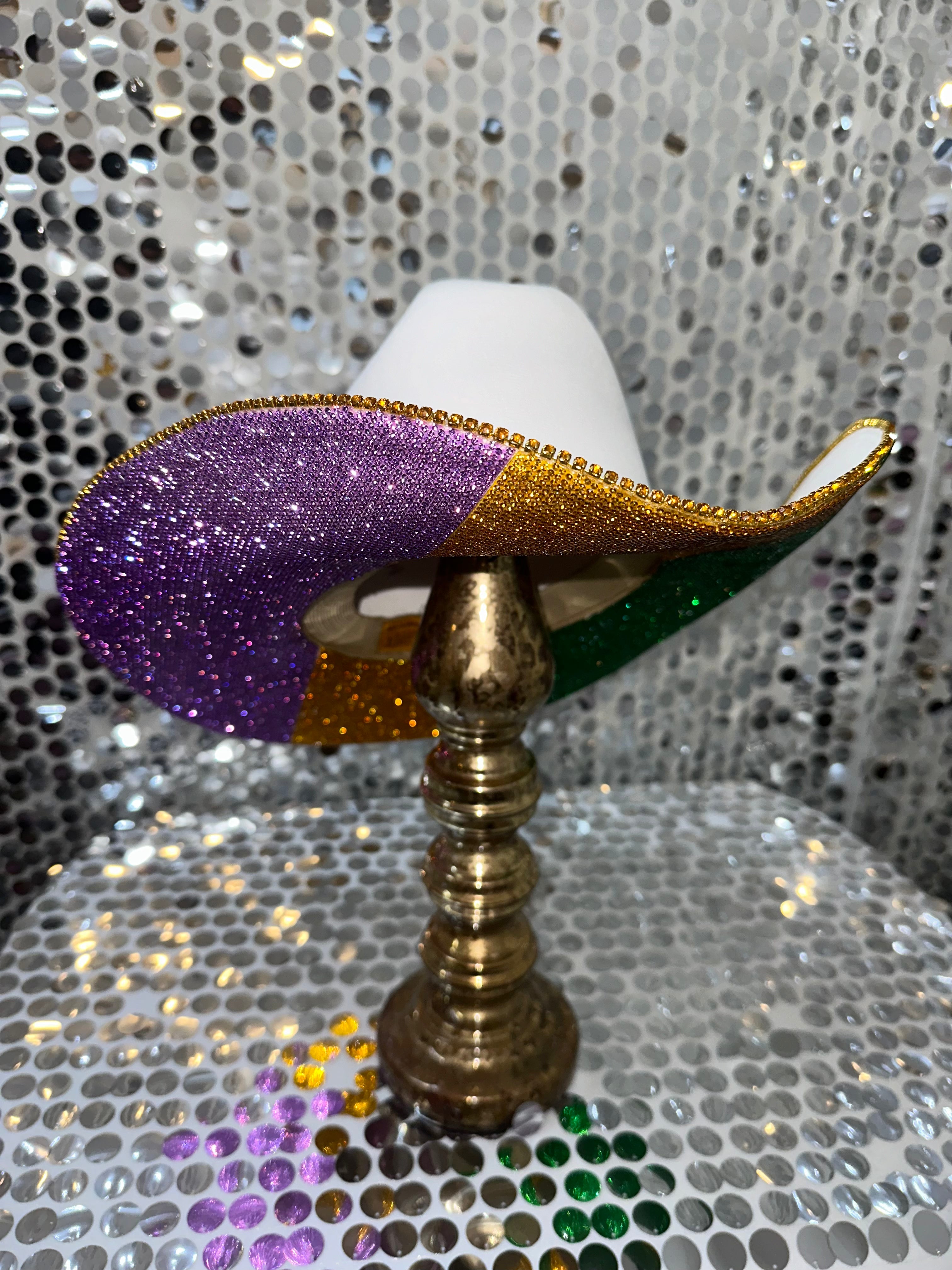 Whose going to New Orleans?! The perfect showstopping piece to wear with your Mardi Gras outfit this year! These are one of a kind and you'll be sure to stand out in this custom hat! These are limited edition and only a few will be made! Be sure to grab one while you can.