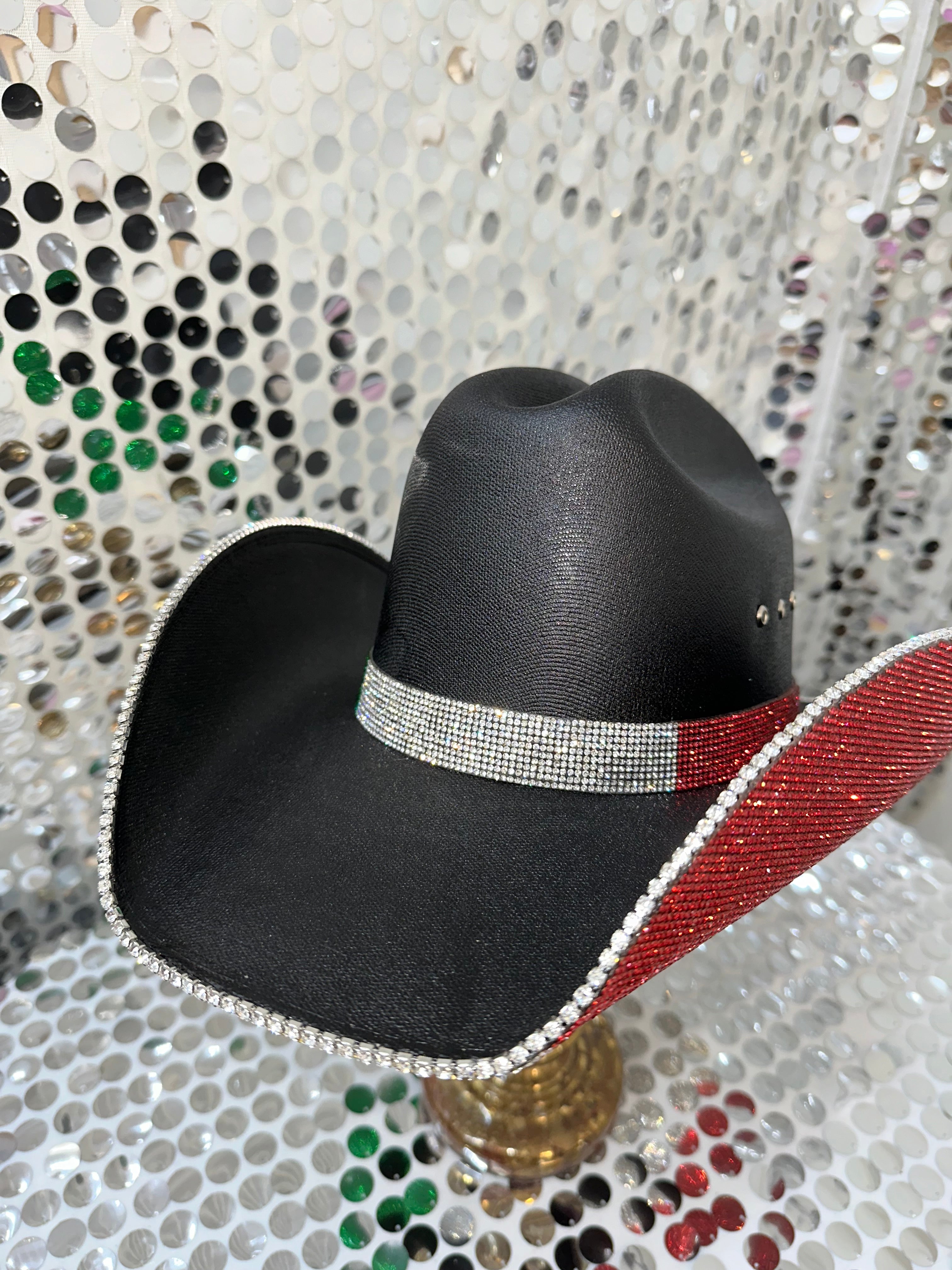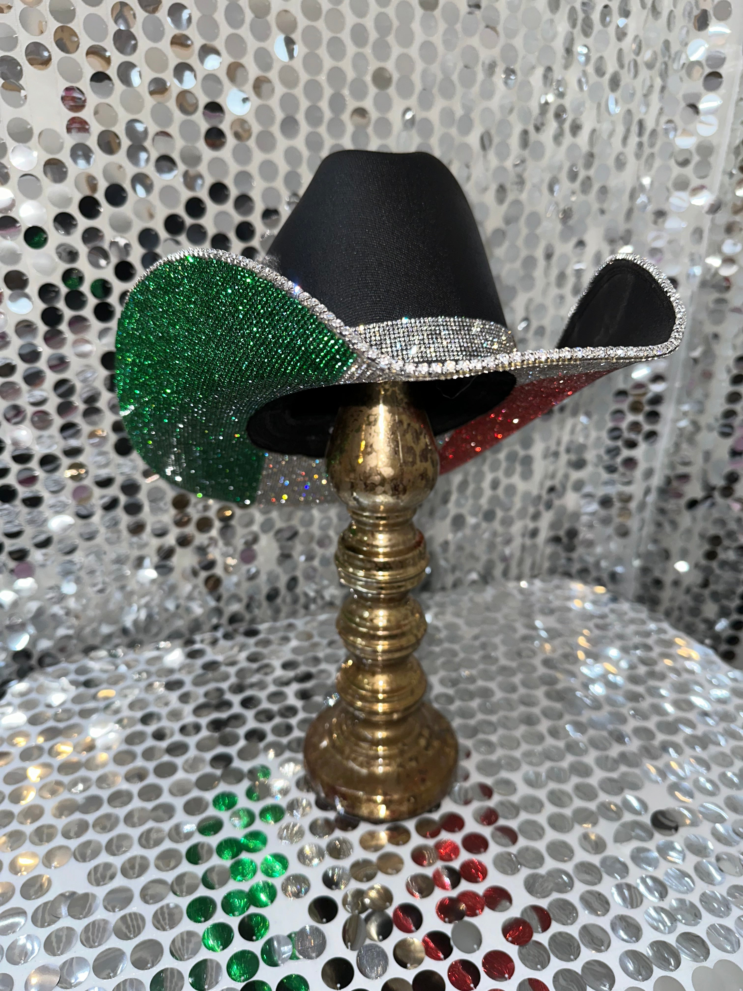 • Mexican flag print rhinestones on the bottom brim with matching crystal, green & red hat band