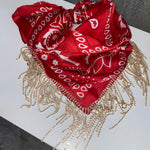 Each bandana is hand made and features nearly 2ft of rhinestone chain.