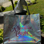 Buy our Rhinestone Cowgirl branded iridescent tote bag to carry your hat with ease! This fabulous tote measures at 20" wide, 16" tall, and 6" deep. Rhinestone Cowgirl hats will fit!