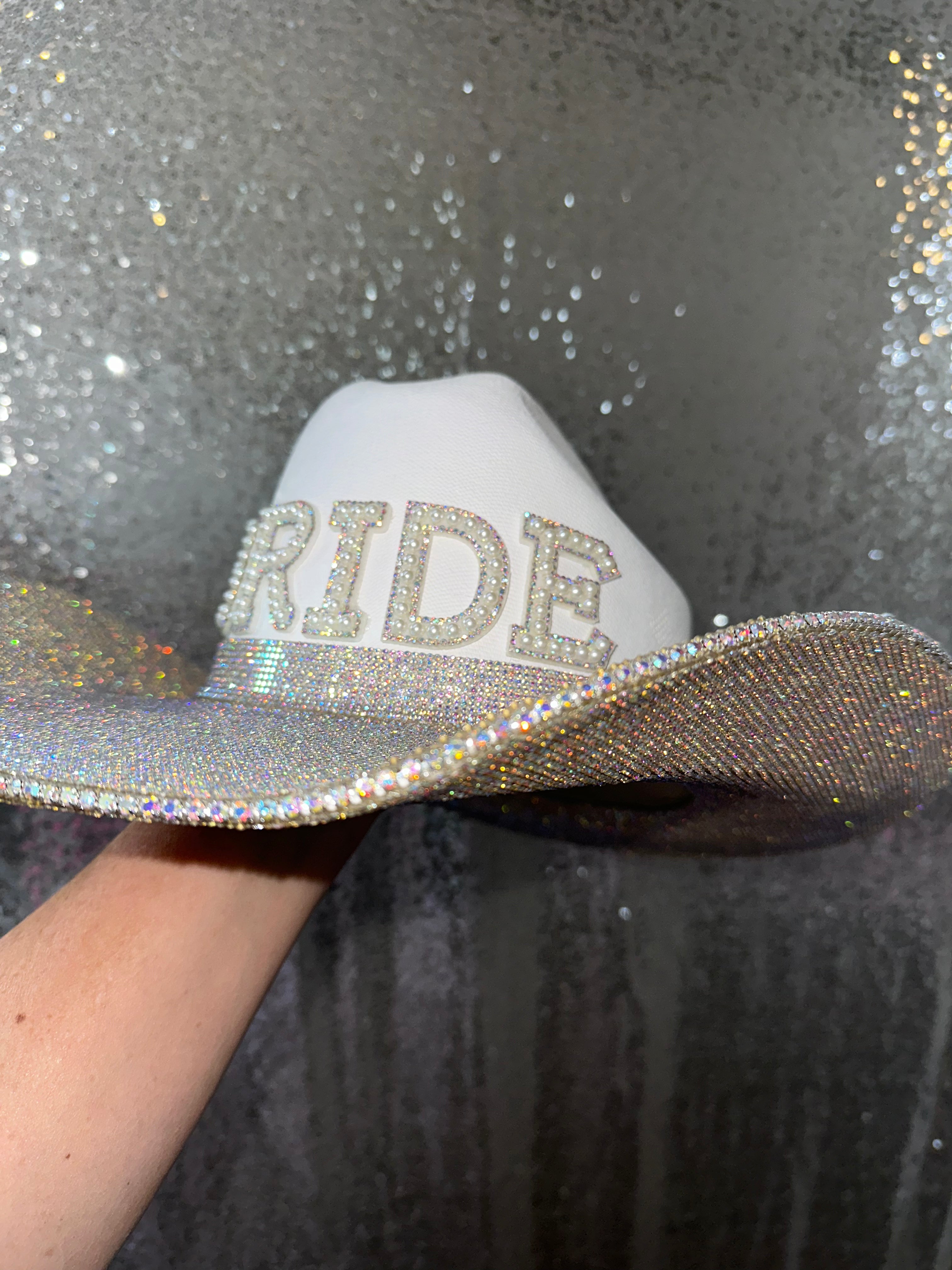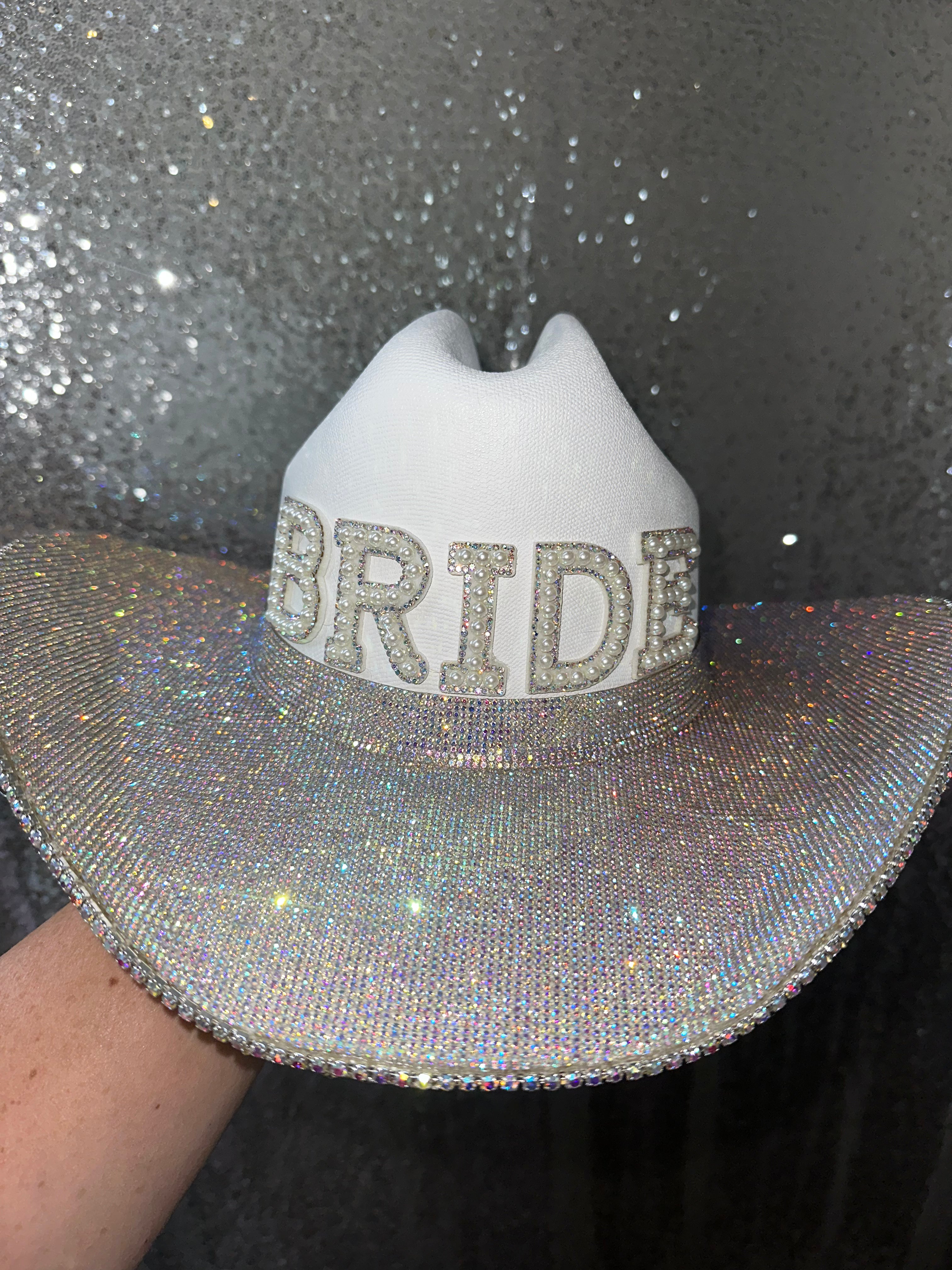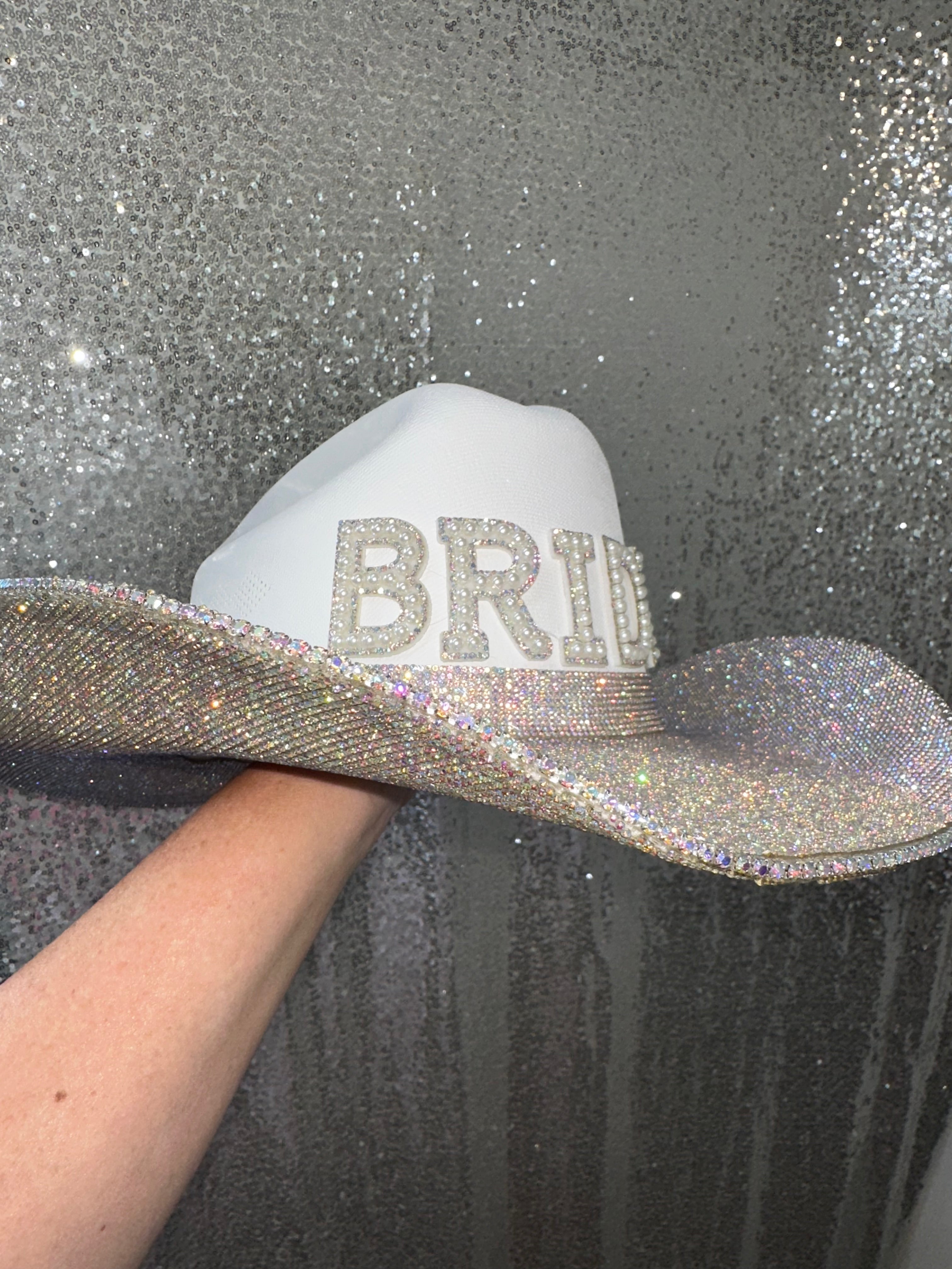 • Bride rhinestone letters on front of the hat with pearls and ab rhinestones