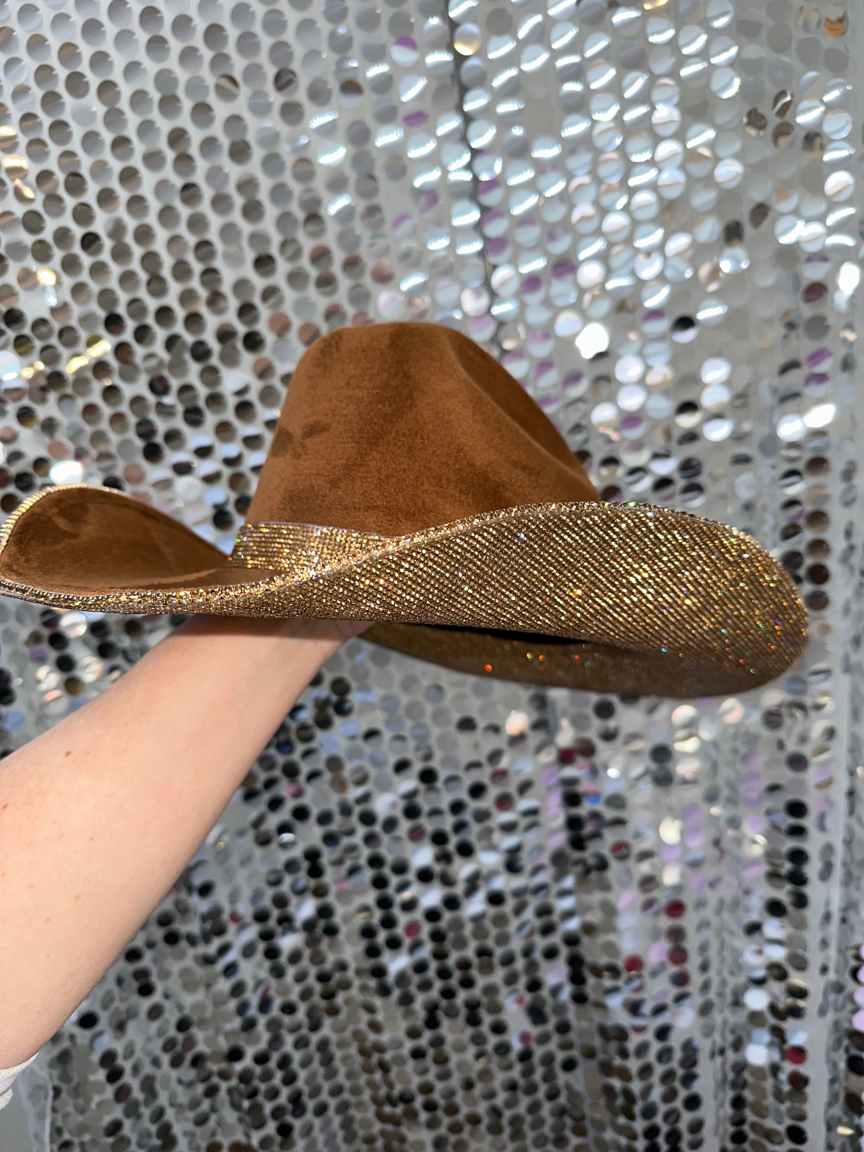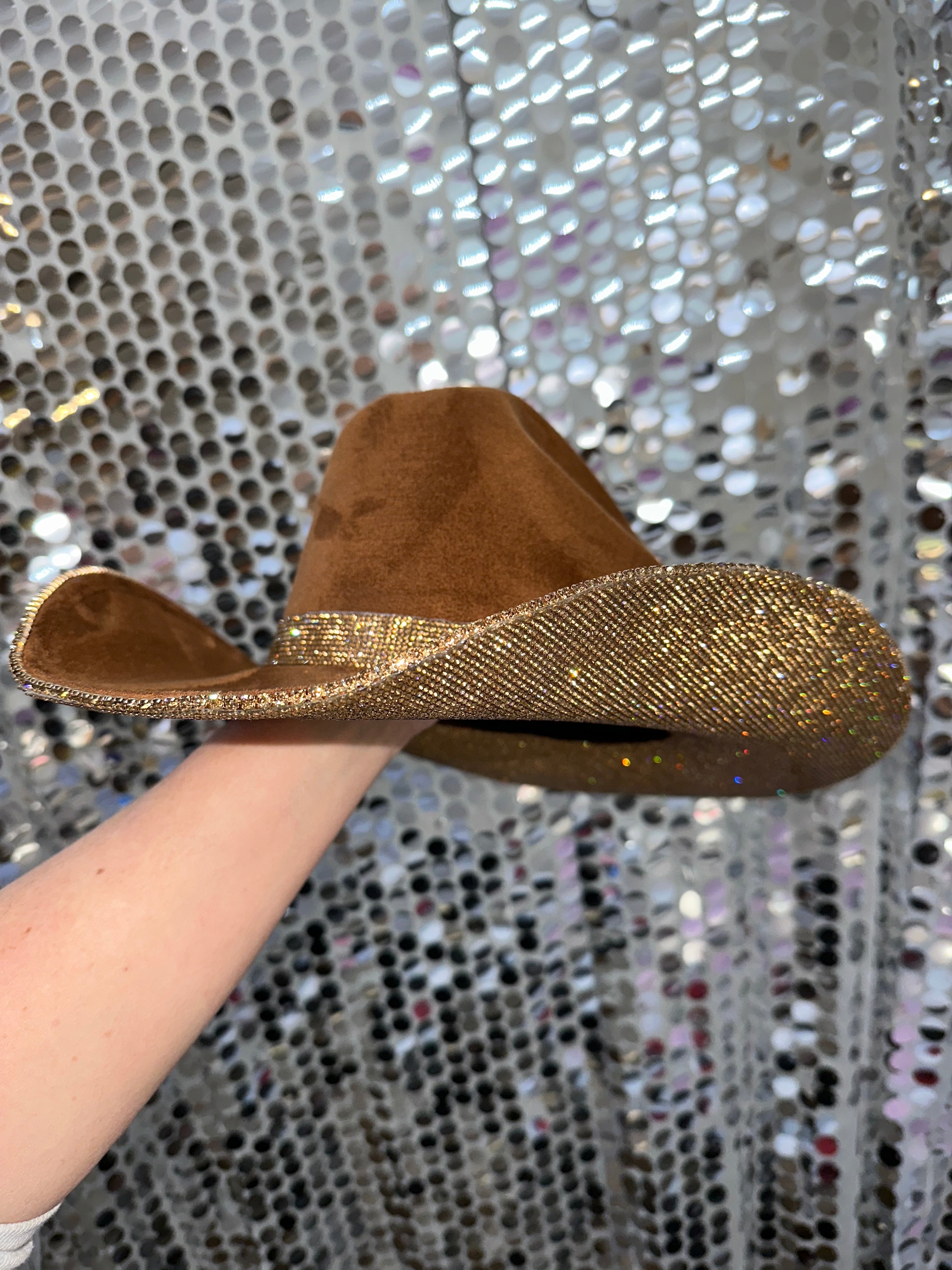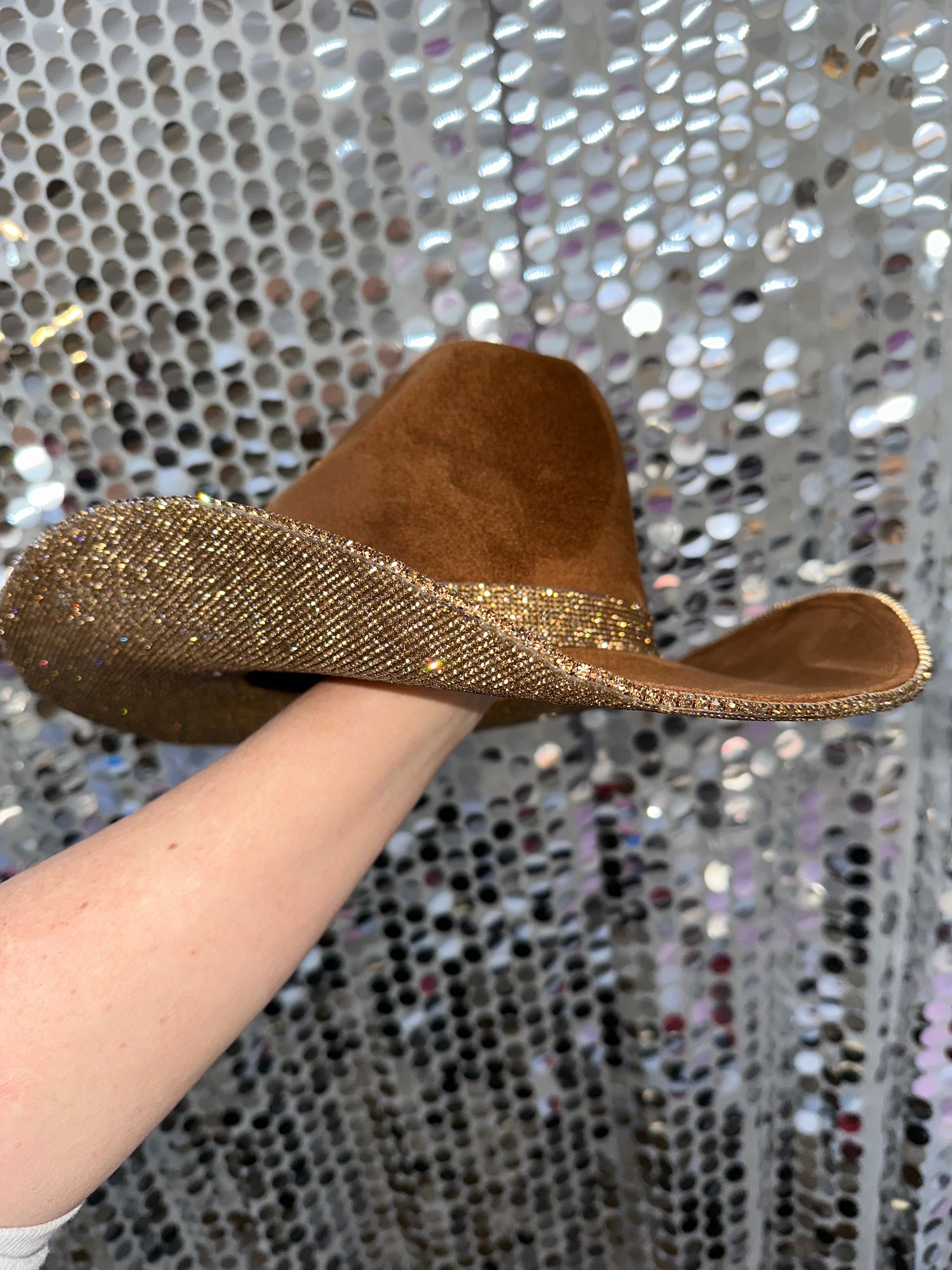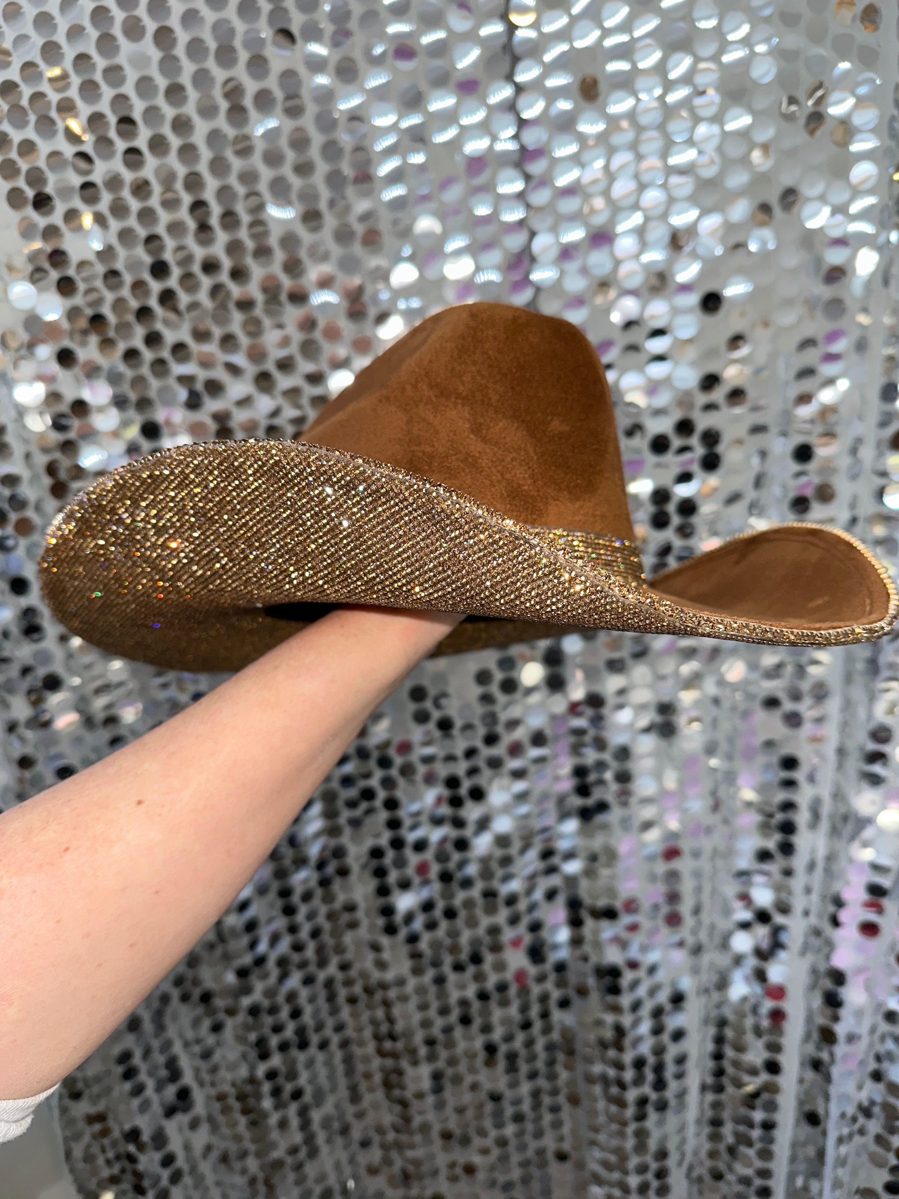 Tobacco suede Hat & Lt Topaz Rhinestones