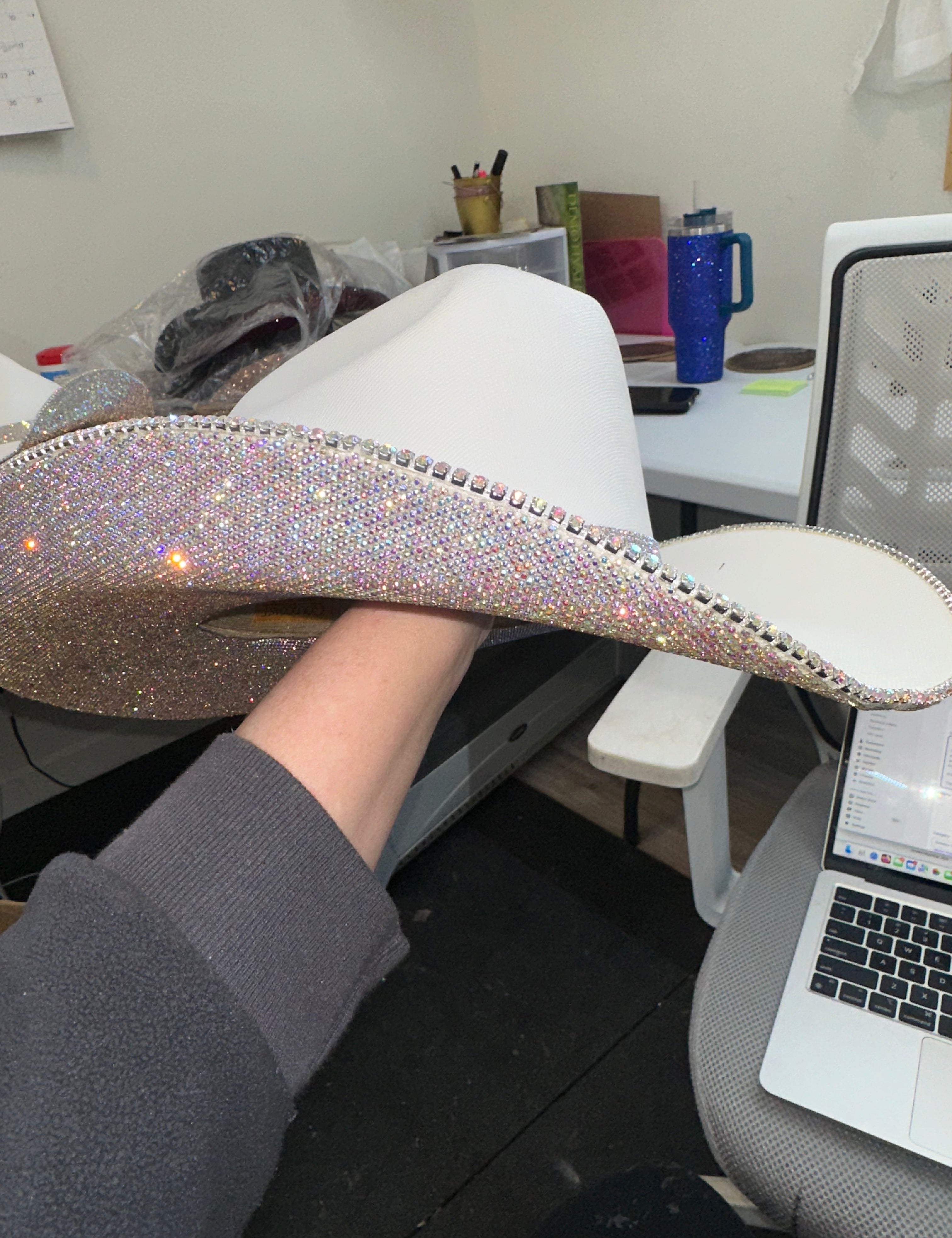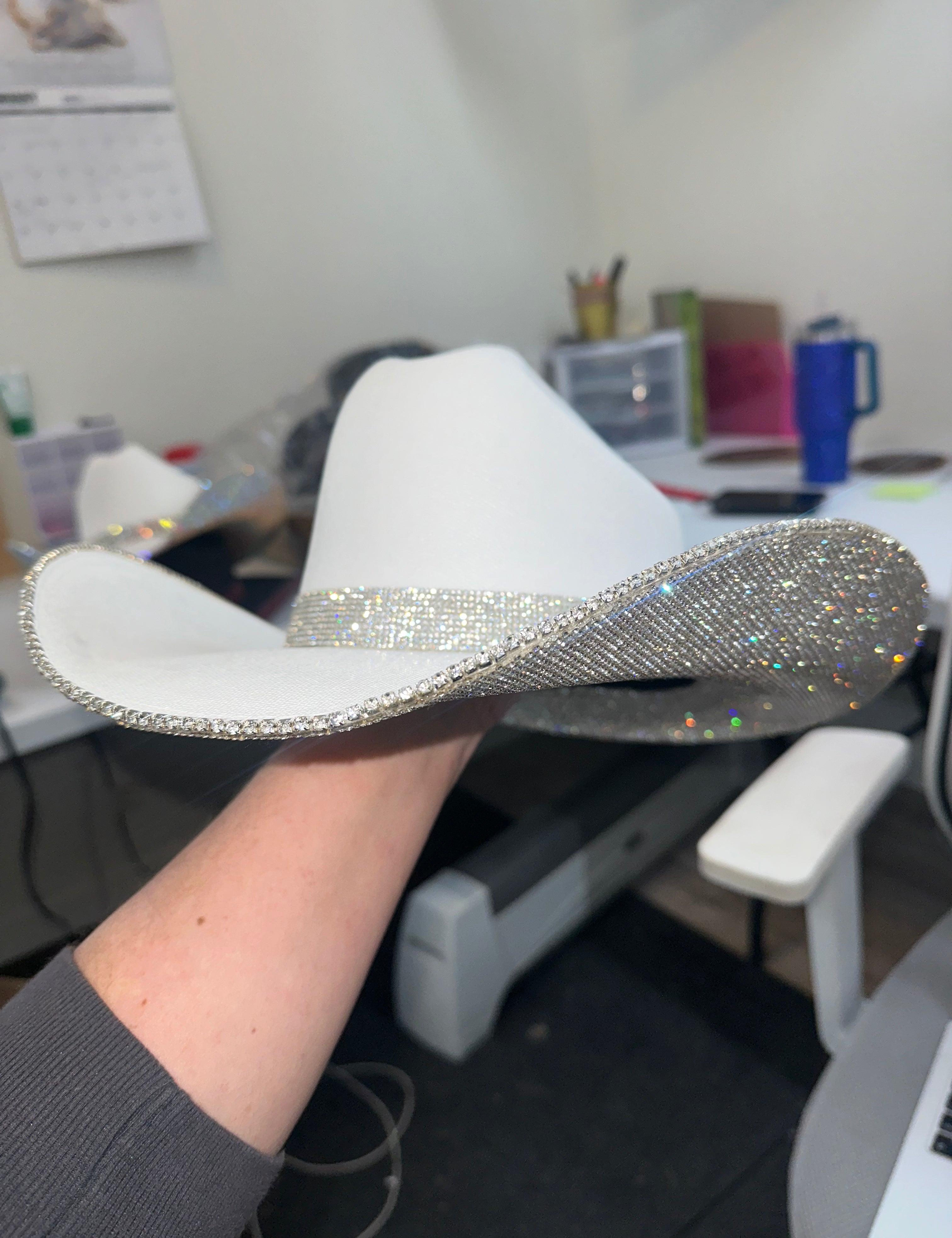 DEFECTIVE: White L/XL w/ crystal (cracked top brim)