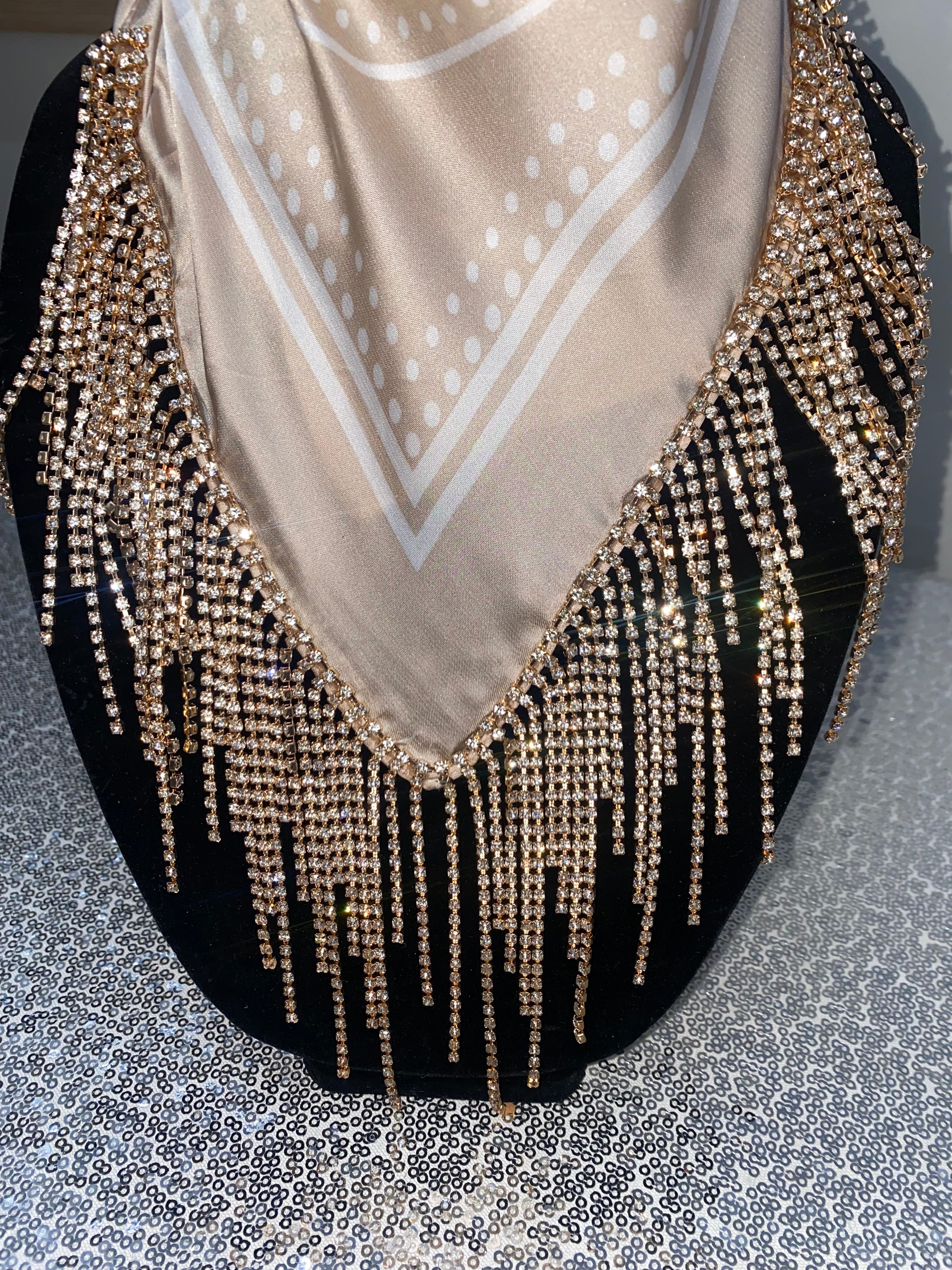 Each bandana is hand made and features nearly 2ft of rhinestone chain.