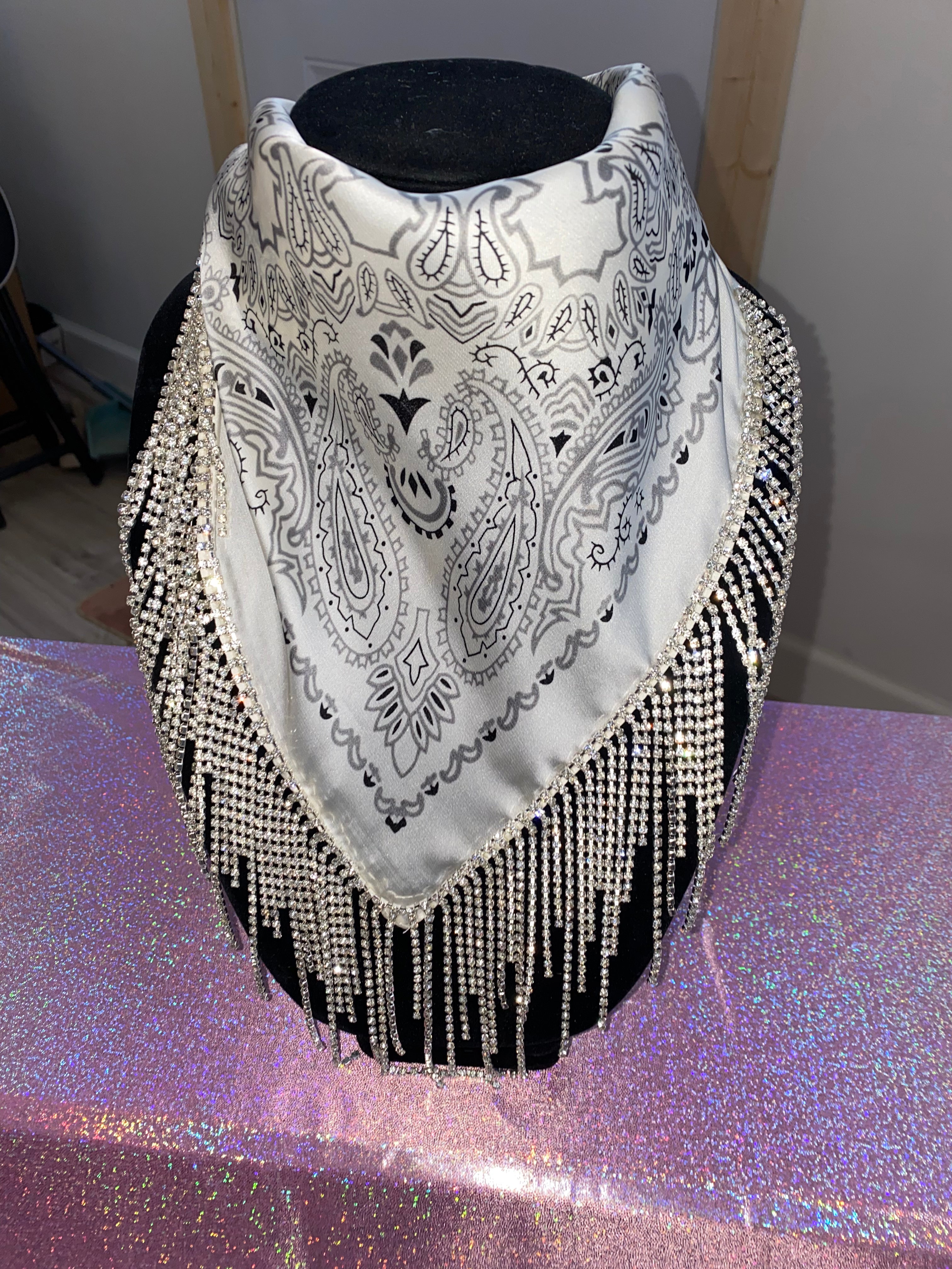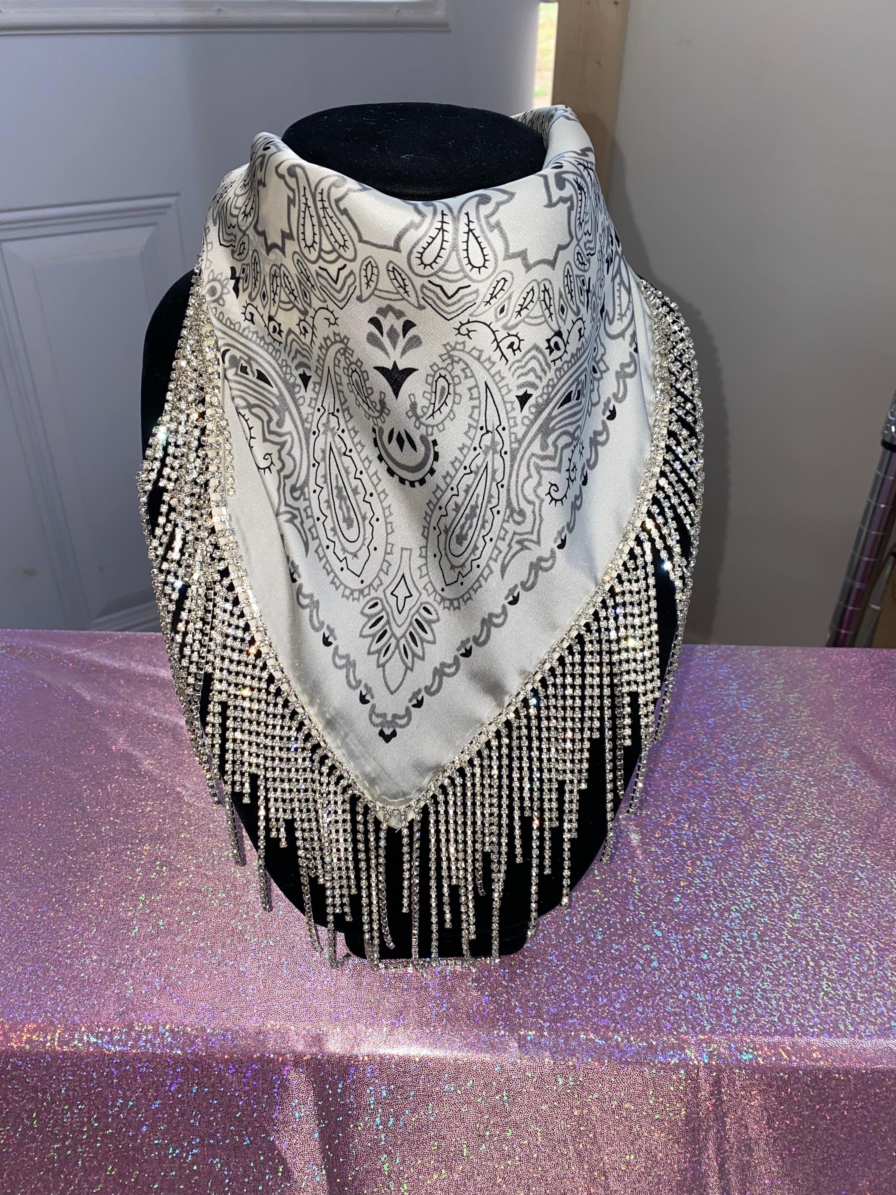 Each bandana is hand made and features nearly 2ft of rhinestone chain.