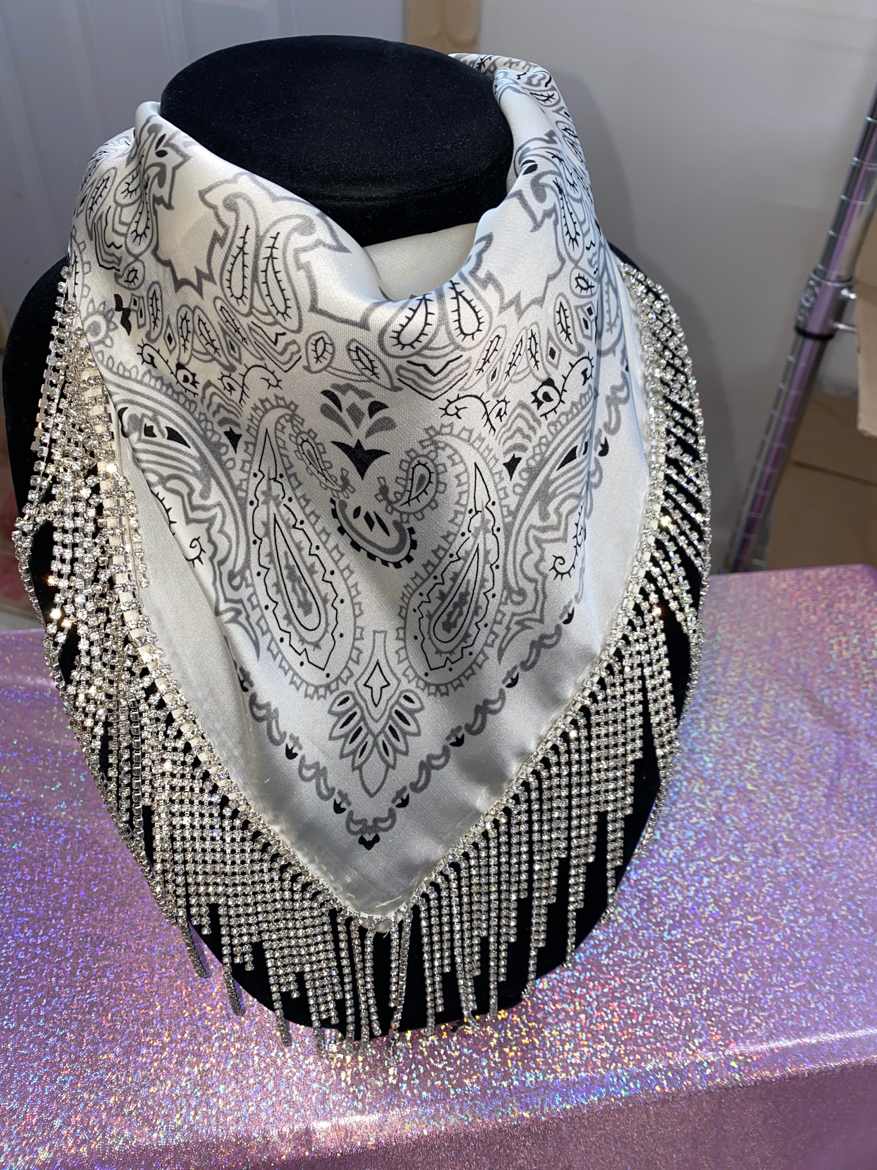 Our rhinestone bandanas are the perfect accessory to wear with any rhinestone cowgirl hat or alone by themselves! Wear them with denim dresses, sequin outfits, flannel shirts, jumpsuits and more! If you are looking to dress your outfit up or take it to the next level these are for you!