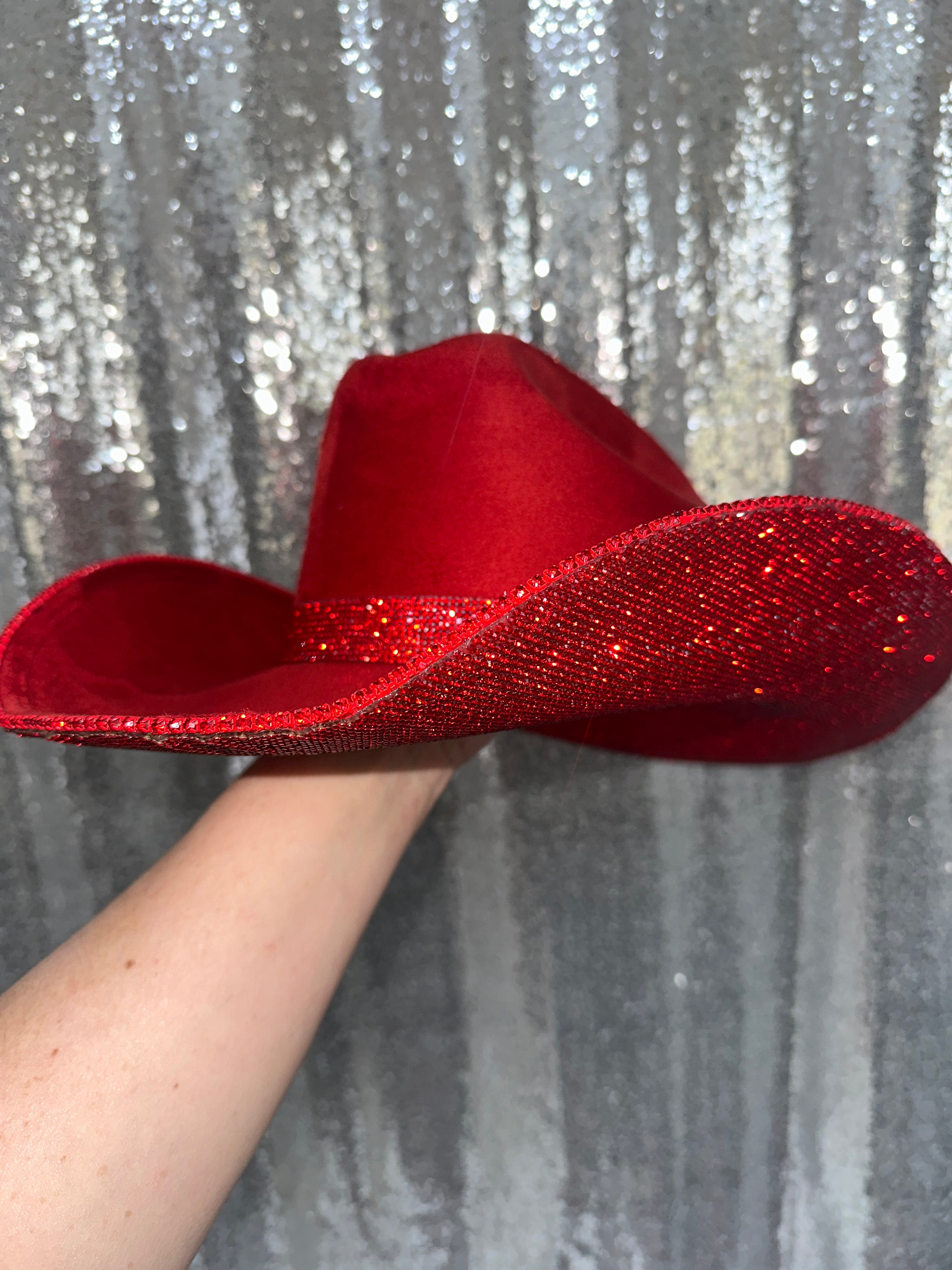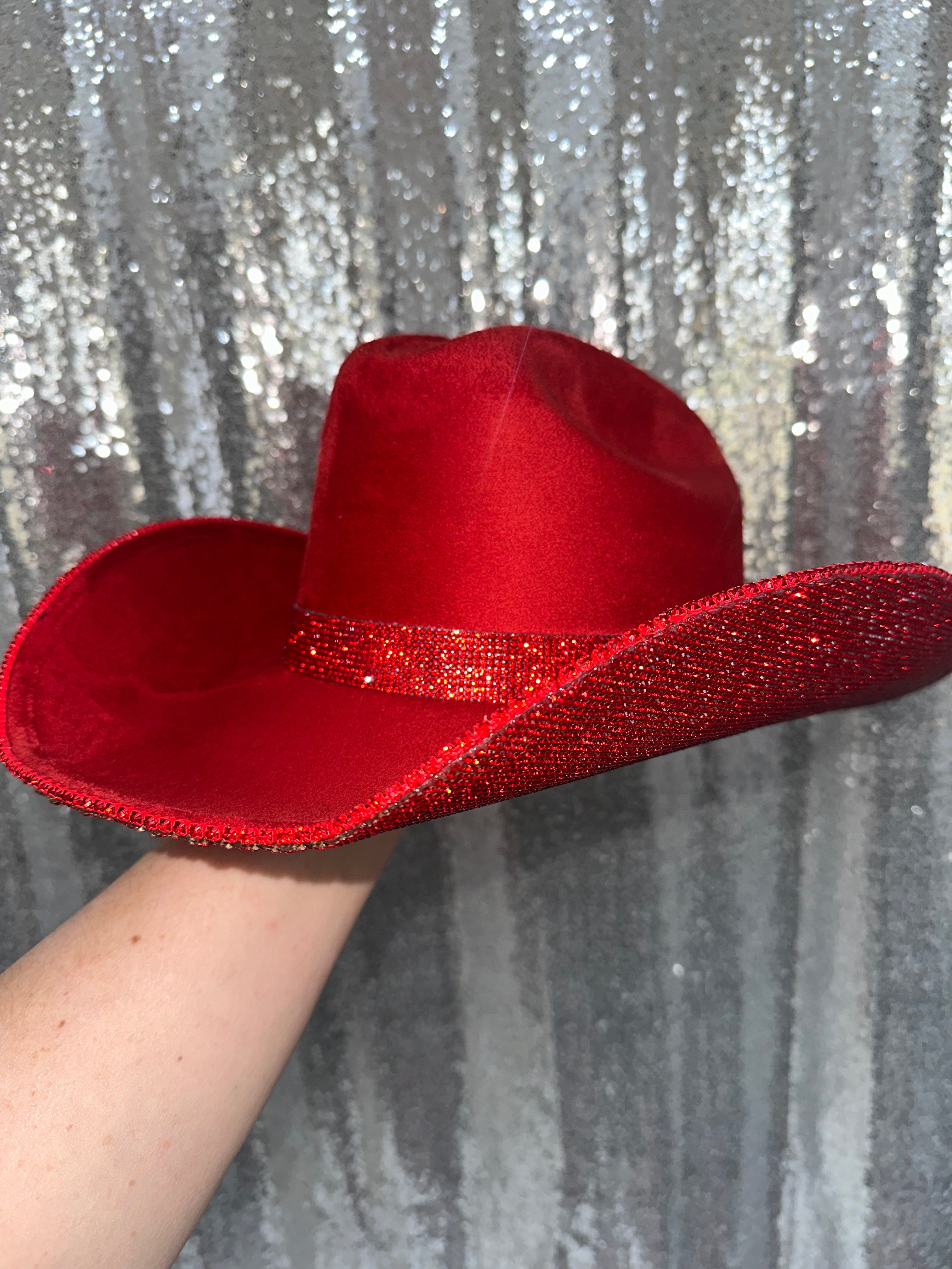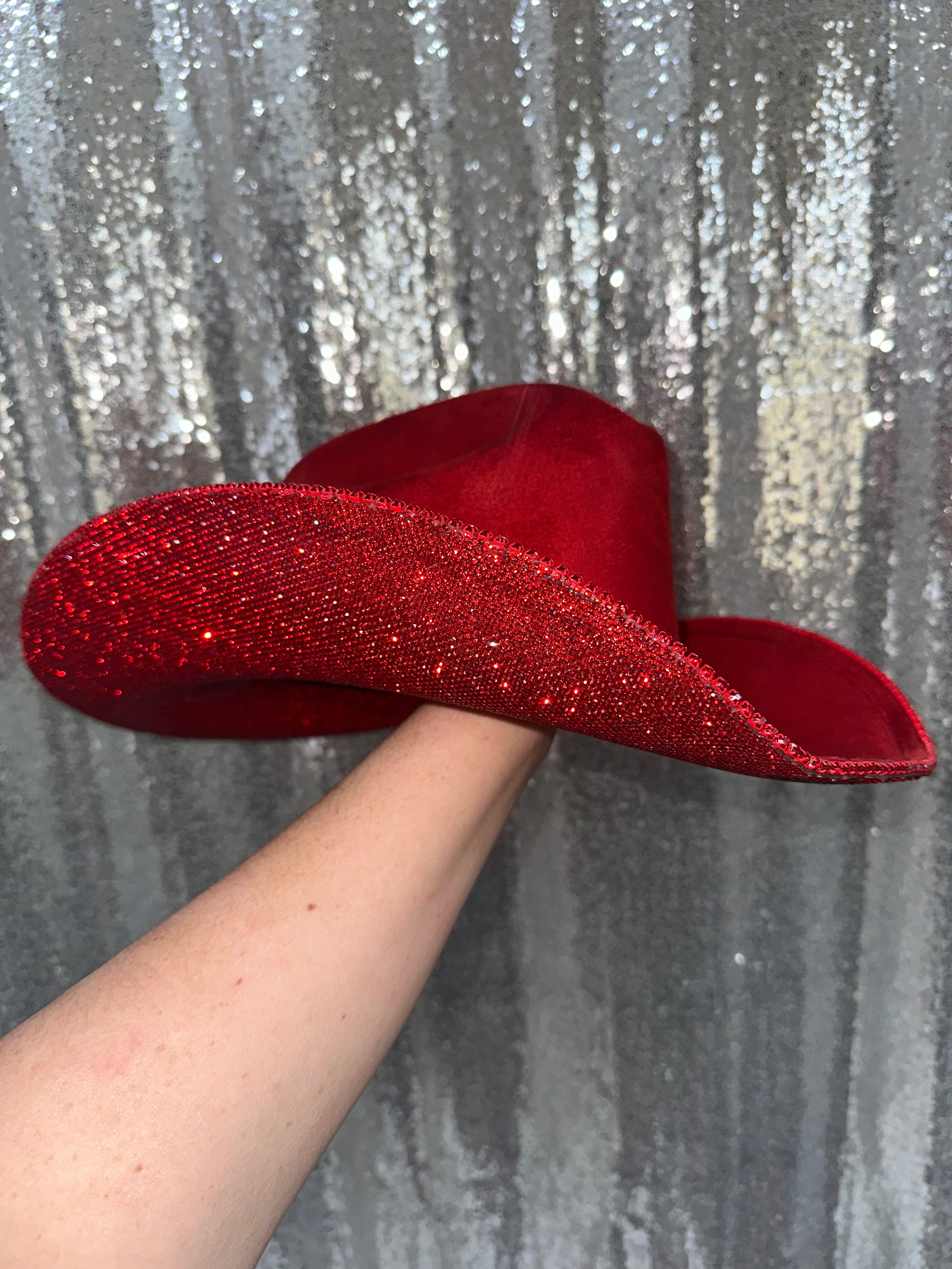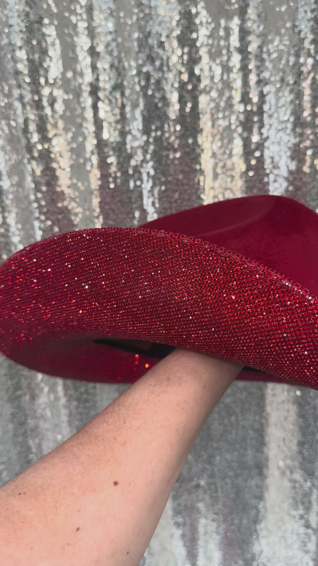 • Red rhinestones on the underneath brim with a red hat band and trim
