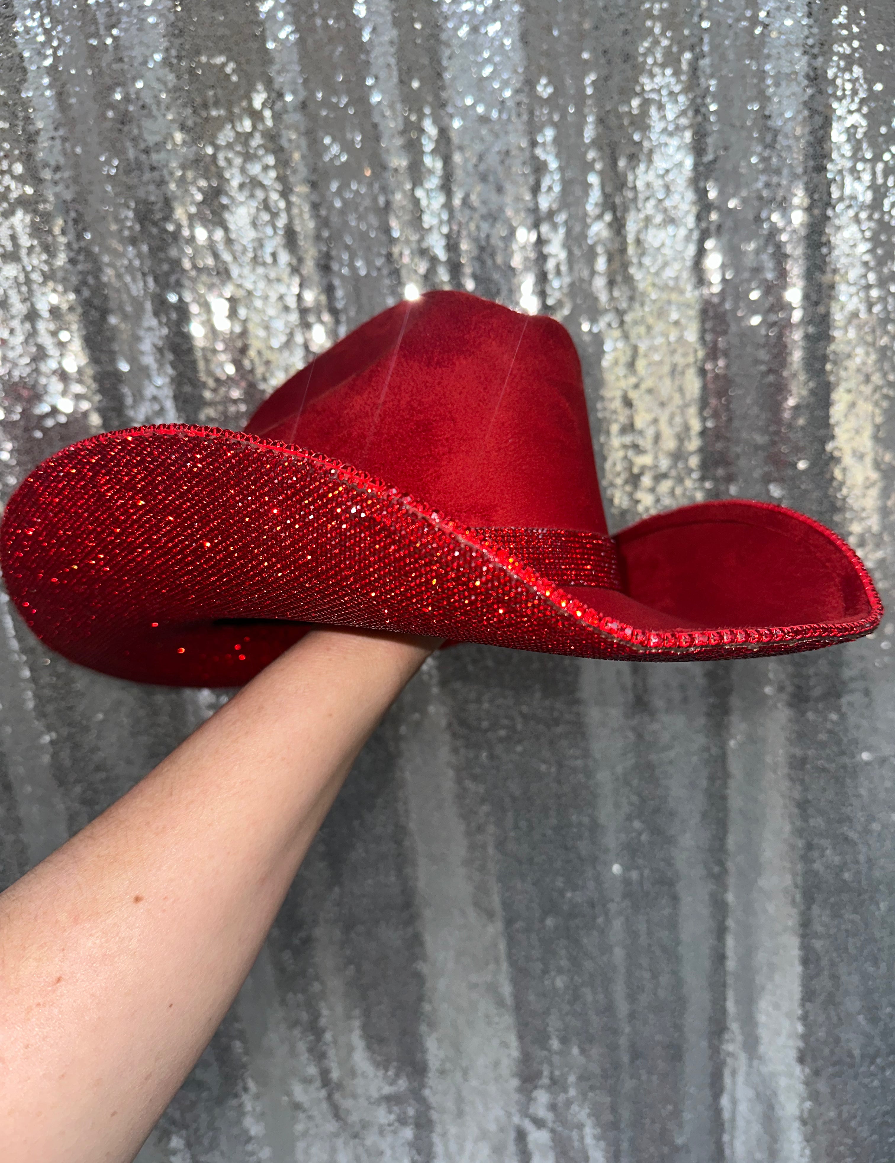 Black Suede & Black Rhinestone hat w/ Crystal Trim