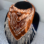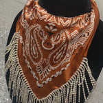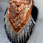 Our rhinestone bandanas are the perfect accessory to wear with any rhinestone cowgirl hat or alone by themselves! Wear them with denim dresses, sequin outfits, flannel shirts, jumpsuits and more! If you are looking to dress your outfit up or take it to the next level these are for you!