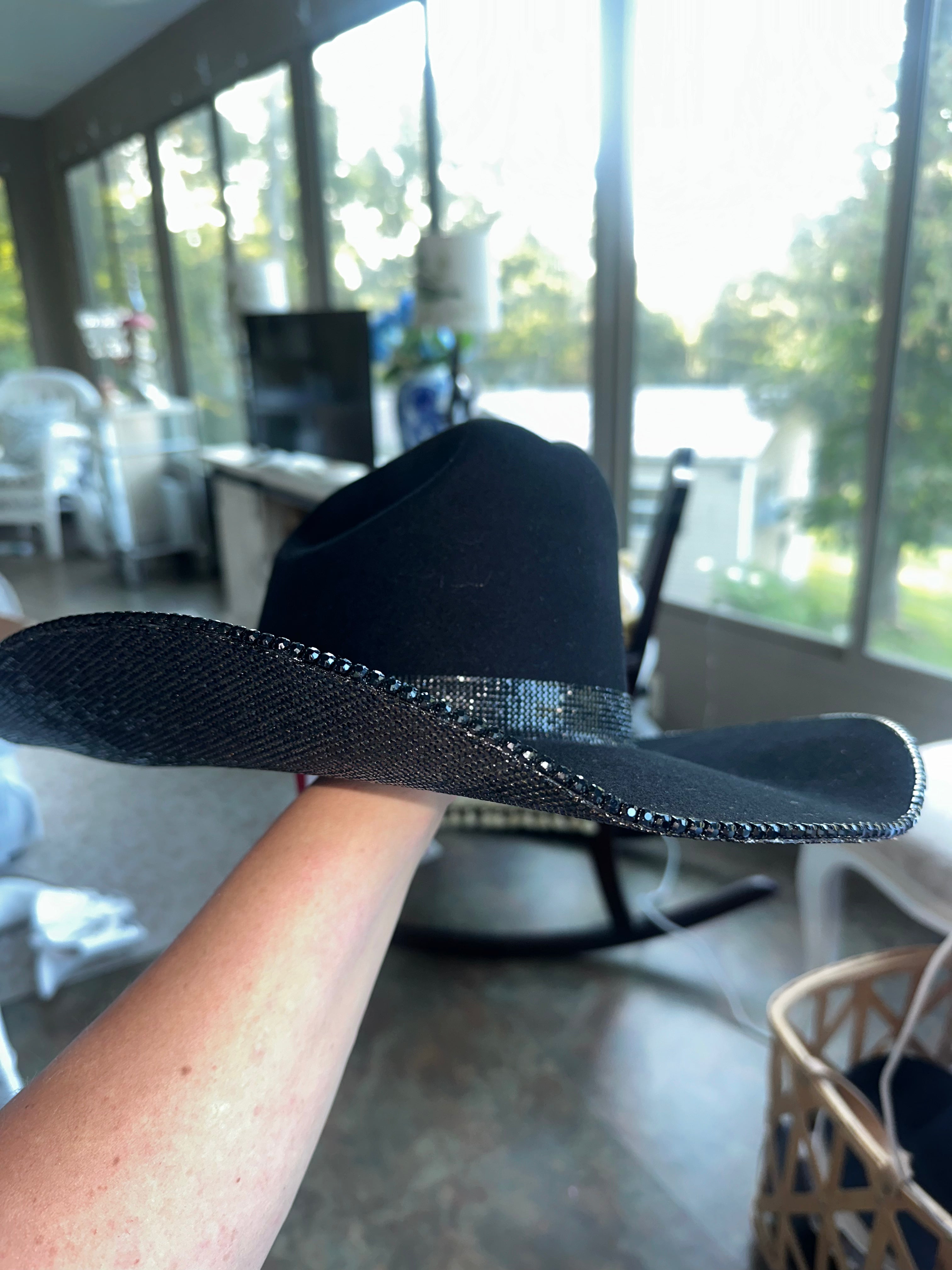 *FLASH SALE: BAILEY FELT 6 1/2 W/ BLACK RHINESTONES
