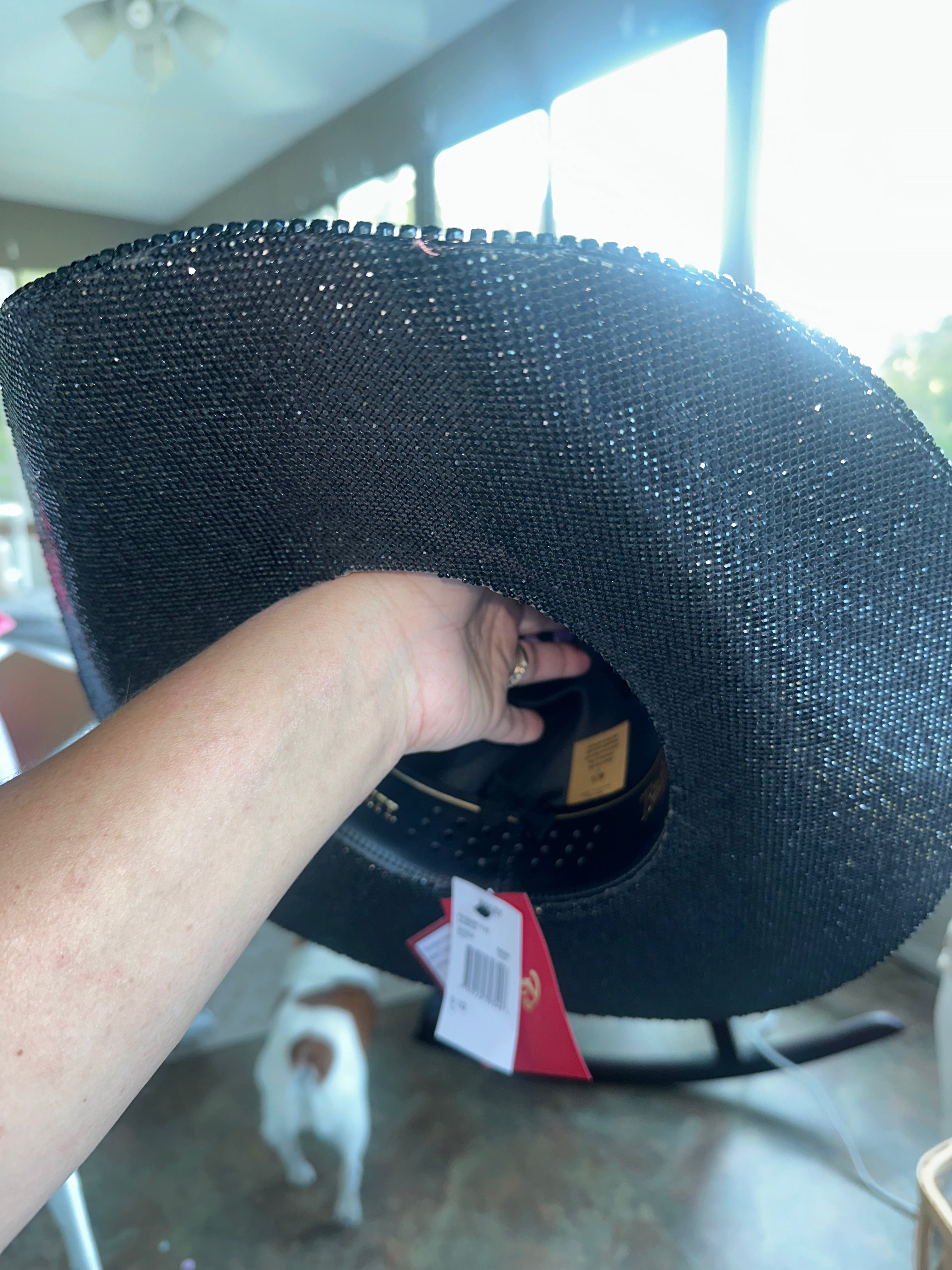 • For straw hats that do not have rhinestones on top, we recommend using a little steam to make the hats more flexible if wanting to shape. If straw hats have rhinestones on the top brim, we recommend using your hands to slowly shape the hats