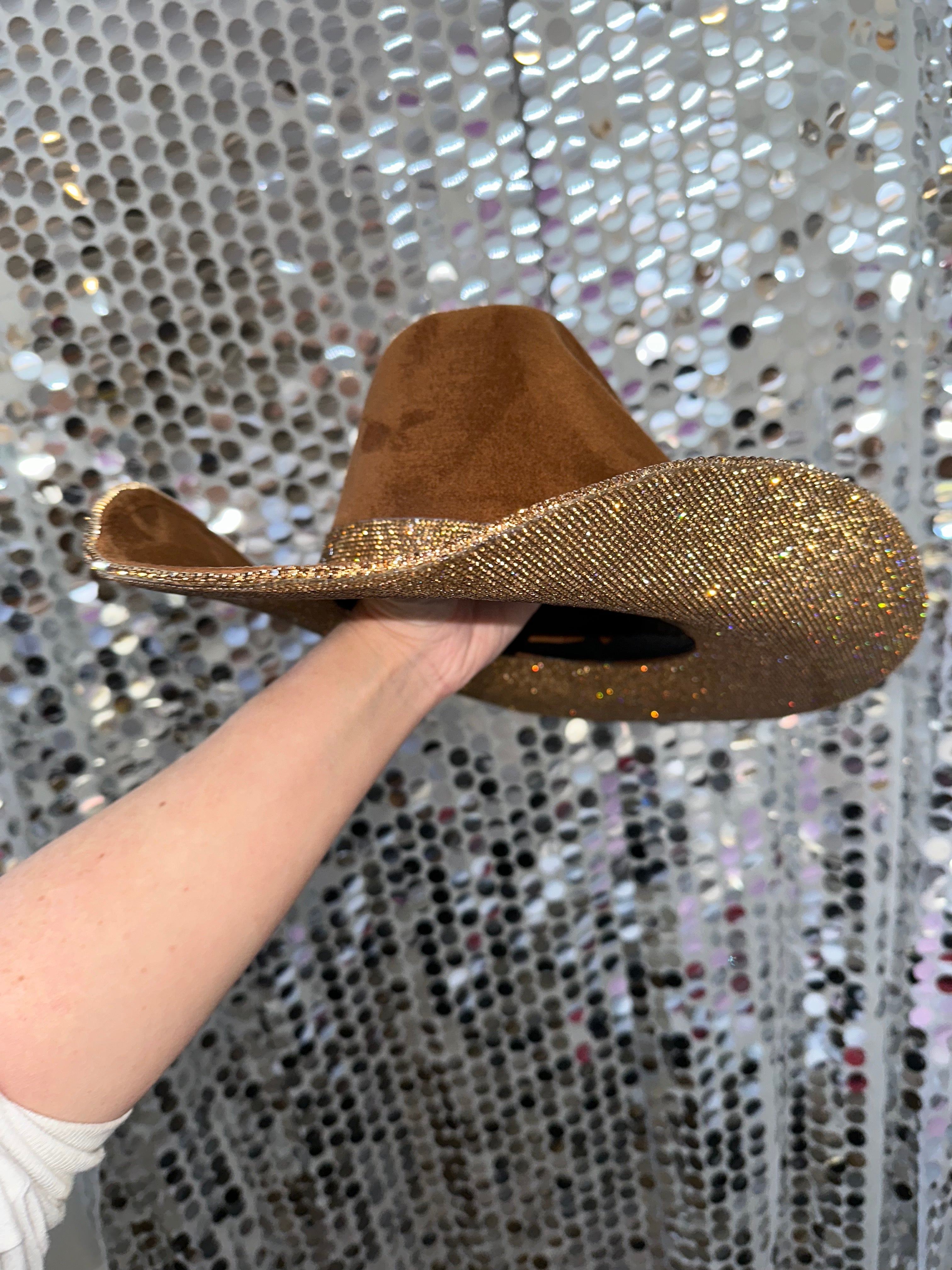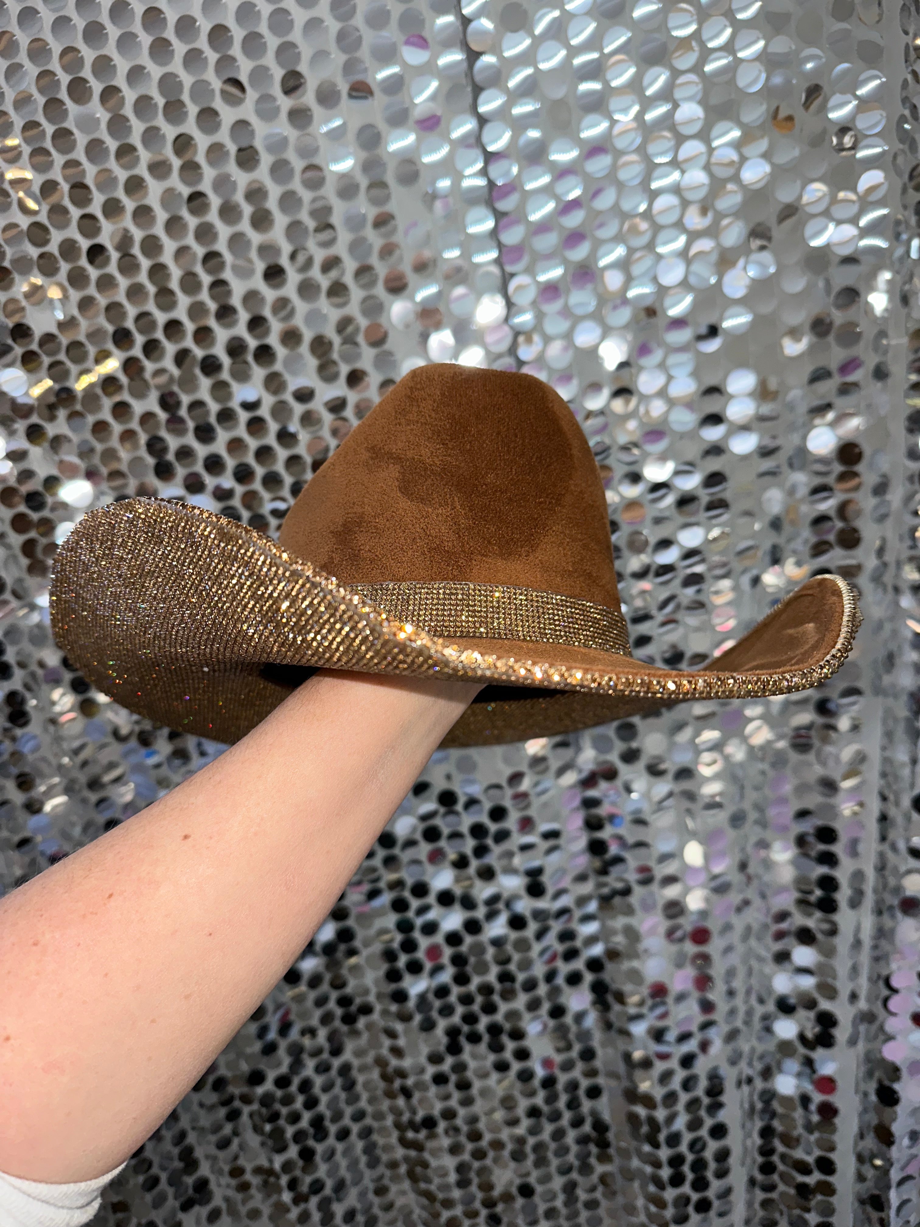 Tobacco suede Hat & Lt Topaz Rhinestones